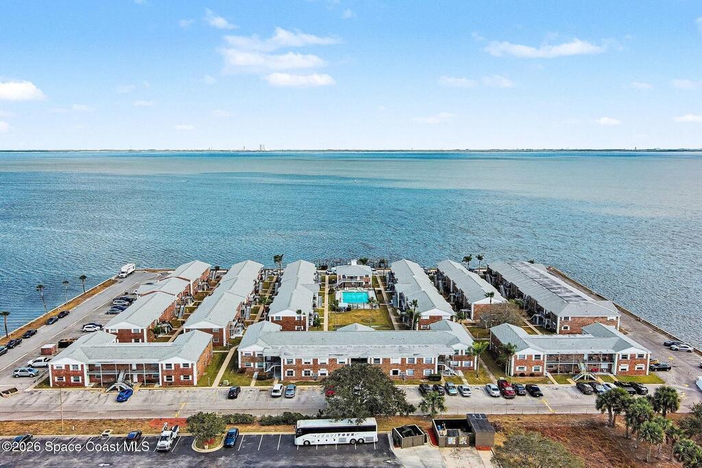 Light, bright with modern touches! This one-bedroom, second floor, waterfront condo is ready for you! Fully renovated in recent years, additionally the cast iron pipes were removed and plumbing updated in 2024. You will have beautiful southern water views from the main living area and bedroom. Step outside to witness every historic launch from the Space Coast! This community has a freshly refinished heated pool and onsite laundry. It does NOT allow pets. One designated parking spot. Association fees cover water, sewer, trash, cable, internet, grounds and exterior maintenance. Directly off US1, this condo is convenient to public transportation, beaches, shopping and area attractions. add this one to your list of must-sees in our lovely Titusville community!