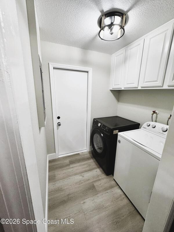 Stunning Remodel. Enjoy this fully renovated 3-bedroom, 2-bath home with inside laundry room. Move in ready with new wood look flooring and custom paint throughout. Kitchen with new white cabinetry, granite, and stainless steel and sliding doors to patio perfect for grilling. Vaulted ceilings are soaring with windows galore. Primary on the first floor with private bath and walk in closet. Fully fenced and private back yard with covered patio and oversized SHED for storage. Conveniently tucked away in desirable Sable Lakes. Quiet luxury with sidewalks and a cul de sac but near shopping, schools, and major highways for easy access to Orlando, Beaches, KSC, Viera. Washer/dryer left for tenant convenience as is.. Pets will be considered on a case by case basis.
