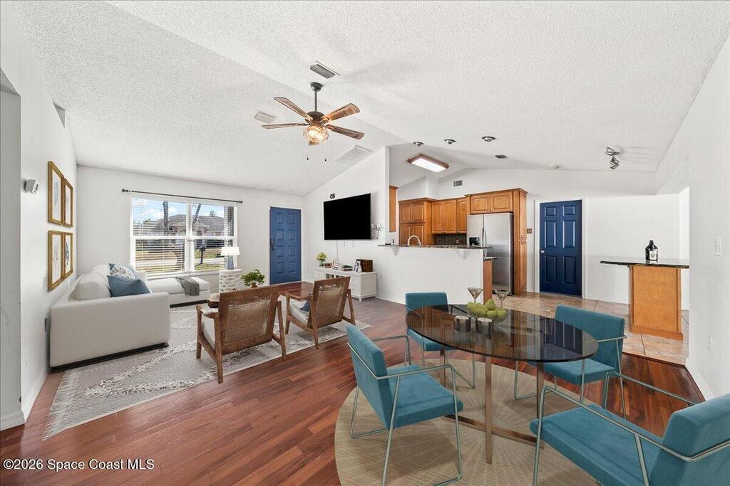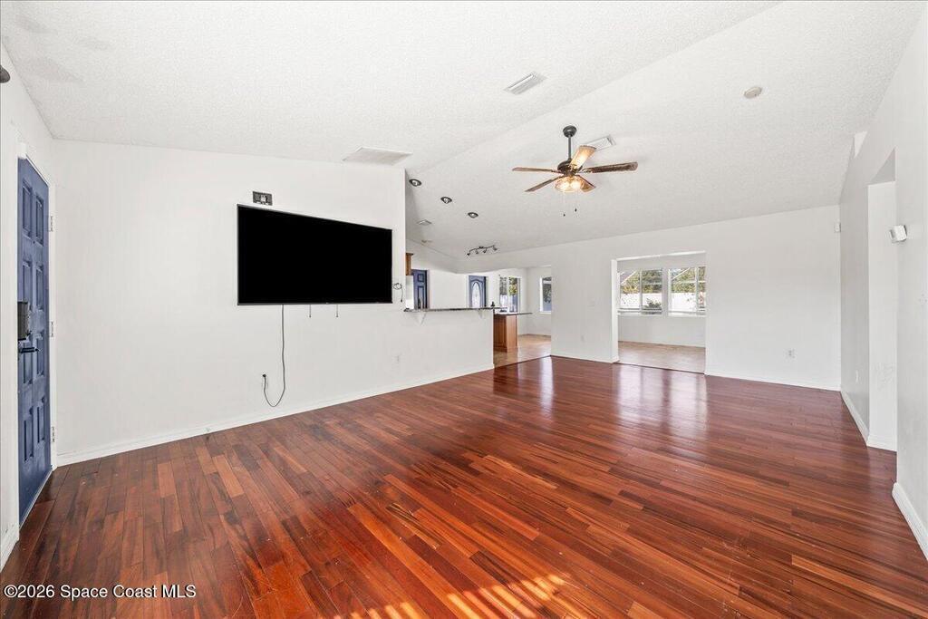 Double lot! This beautiful pool home rests on an expansive .46 lot. The front entryway welcomes you into a large open floorplan with a lot of natural light. Home boasts several upgrades to include: Roof 5/2023, Fence 2025, all new HVAC Ducts 2022, and HVAC 2019. The interior offers a split floorplan, two separate living areas, and an expansive eat in kitchen. The back family room overlooks the sparkling screened in pool. Excellent location in the heart of Palm Bay near shopping, dining, and highways.