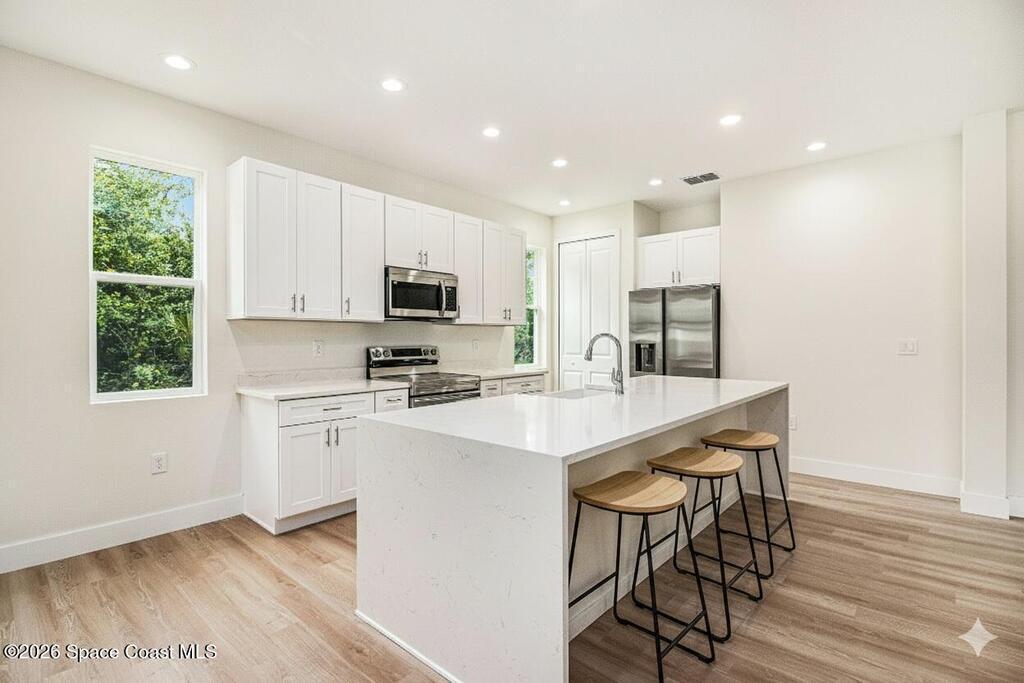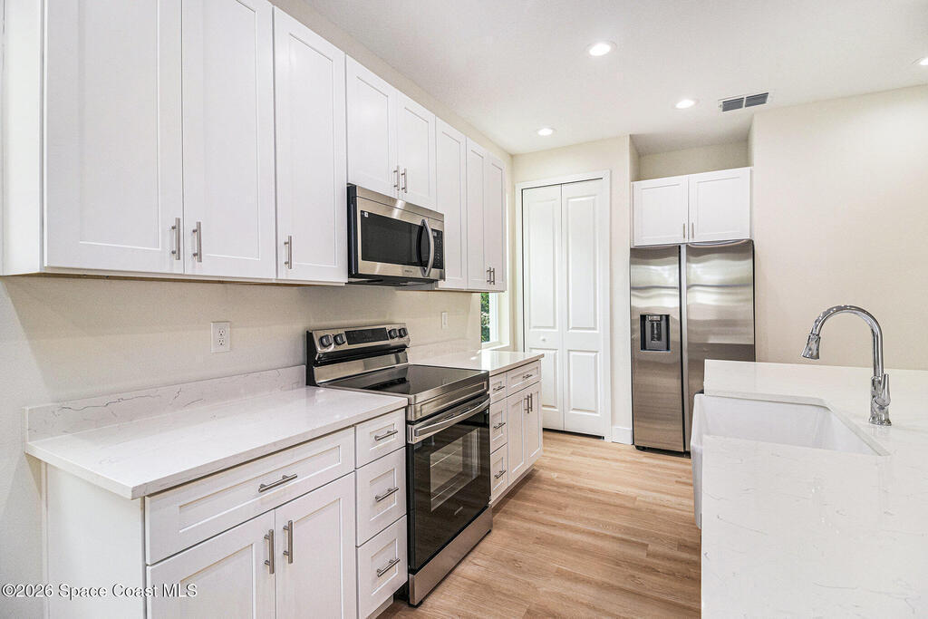 MOVE-IN READY | LOW INTEREST RATE LOANS AVAILABLE Experience refined Florida living in this exquisitely built 4-bedroom, 2.5-bath new construction home in the heart of Palm Bay. The interior boasts an airy, open-concept floor plan illuminated by natural light. At its heart is a Chef's Kitchen featuring solid wood soft-close cabinetry, sleek quartz countertops, and stainless steel appliances. No detail has been spared, with premium upgrades included as standard:Architectural Elegance: 9'4'' ceilings paired with striking 8-foot doors.Premium Finishes: Luxury vinyl plank flooring and custom-tiled showers.Modern Comfort: Contemporary layouts designed for seamless entertaining.