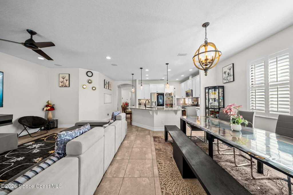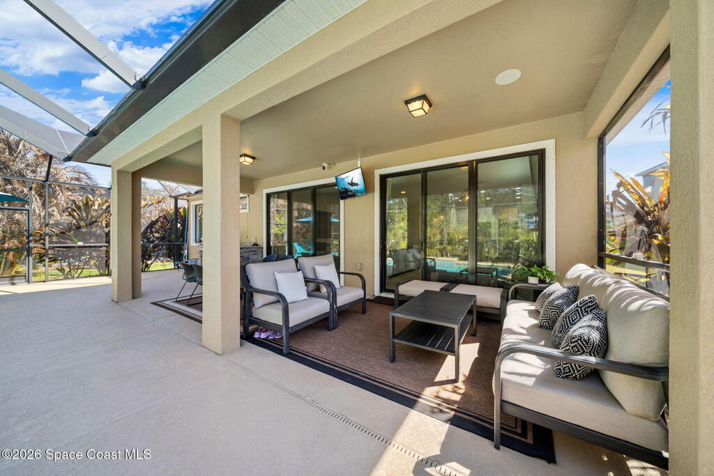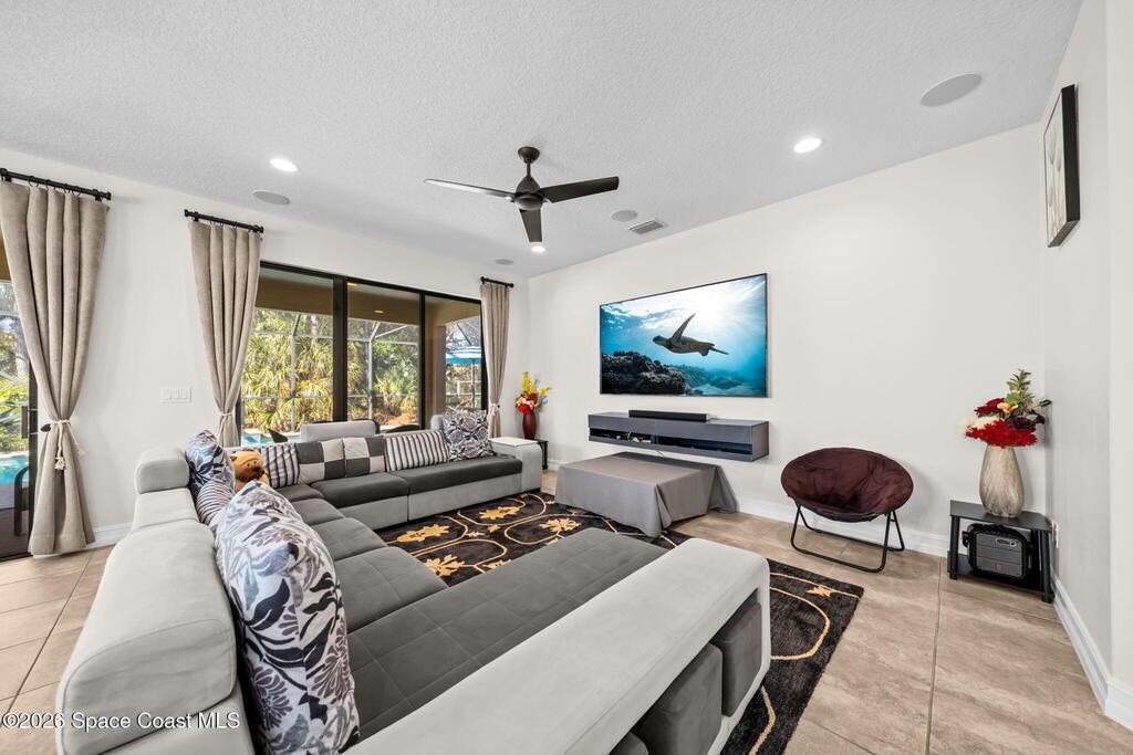 Saltwater pool. Summer kitchen. Preserve privacy with lake glimpses.Experience the Florida lifestyle in this beautifully maintained home backing to lush conservation. Fresh interior paint, plantation shutters, tall baseboards, whole house surround sound speakers, and tile flooring create a clean, modern feel throughout generous living and dining spaces. Two sets of triple sliders open the family room seamlessly to a screened lanai and sparkling waterfall pool, perfect for entertaining or relaxing in total privacy.The kitchen is designed to impress with granite countertops, glass tile backsplash, stainless steel appliances, gas range, breakfast bar seating and white crown-molded cabinetry with under-cabinet lighting.Retreat to a spacious primary suite with double-door entry, large walk-in closet, dual granite vanities, soaking tub and a mosaic-tiled shower.Private, polished and truly move-in ready.
