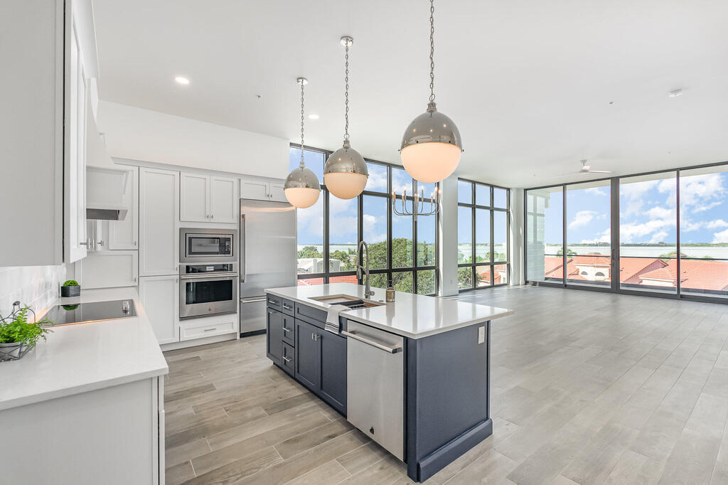 Discover elevated ocean-to-river luxury- remarkable penthouse residence, offers one of the largest & most coveted floor plans available. 50K furnishing credit! Corner unit featuring 3 en-suite bedrooms plus a guest bath, curated with sophistication & upscale finishes. Breathtaking views through 10'+ floor to ceiling impact windows, complemented by motorized shades in the living area & primary suite. Wraparound glass-railed balcony delivers seamless views of the river, dock, & resort-style pool & spa. The chef-inspired kitchen is appointed with premium appliances, radiant cooktop, statement hood, deep sink, & wine refrigerator. The serene primary suite offers private balcony access & a tranquil spa inspired retreat featuring a soaking tub & huge rainfall shower with bench. Cross A1A to private ocean access & exclusive amenities. Residents enjoy hosted community events, equipment rentals, & spectacular sunsets. No rental restrictions & optional STR management, ideal for savvy investor
