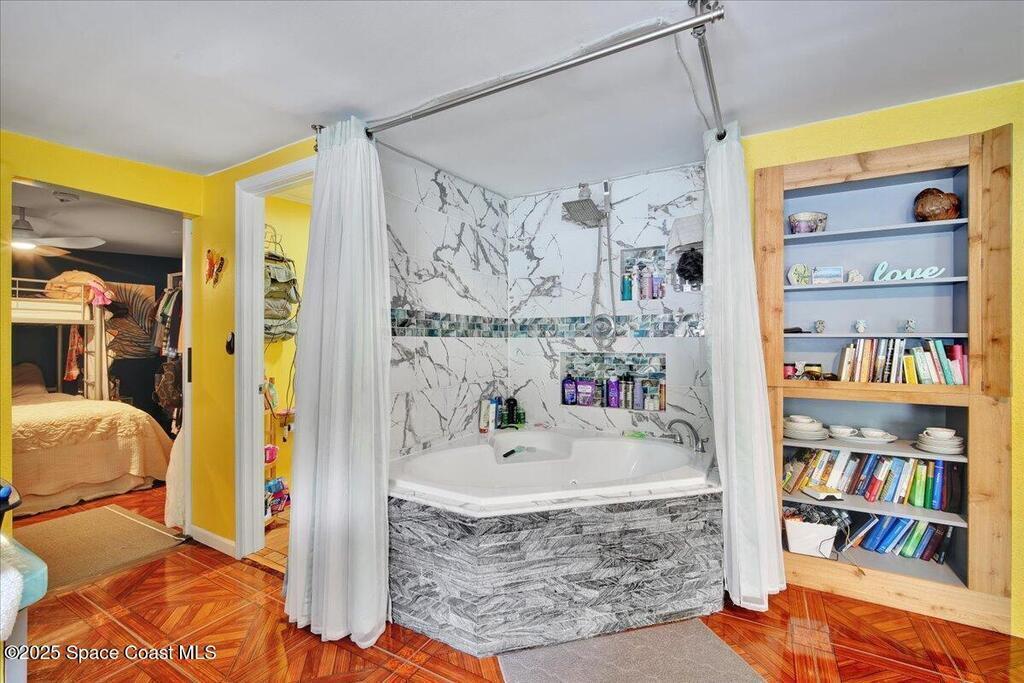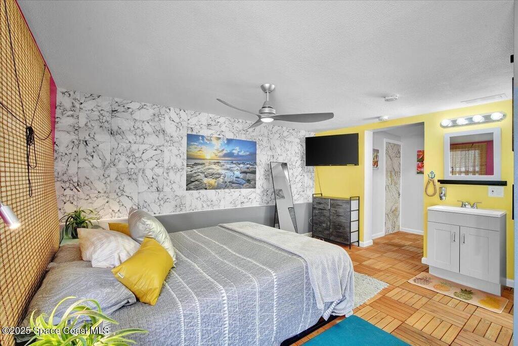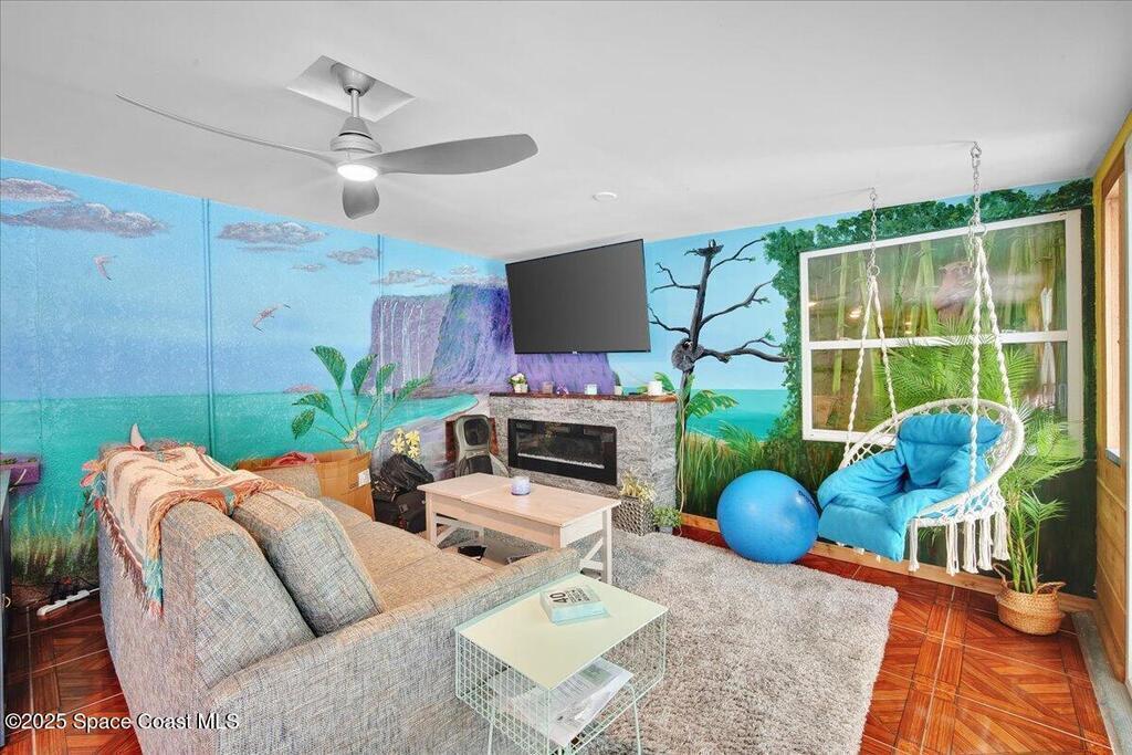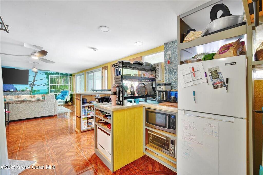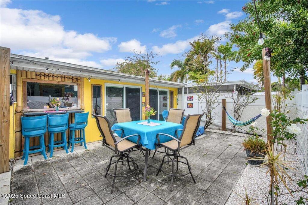In the Heart of Cocoa Beach with endless possibilities is this beautifully renovated 4 bed 3 bath home that spans 2, 332 sq. ft. and features a full income producing studio apartment with a separate entrance and fenced in yard making this ideal for extra income, AirBNB or guests. The main part of the house opens up to yet another opportunity for additional income, guest suite or an amazing Florida room. Just bring the pool table! From keeping this as a single family home, multi generational family use or an investors dream this is the one. The front yard is hardscaped with a large paver circular driveway allowing for plenty of parking, lush landscaping, hammock under the palms and a hangout area with firepit. Walking up you have screened front porch that takes you into the main house area with large living room and kitchen. The kitchen has all new cabinets with granite counters with a bar top and dining area.