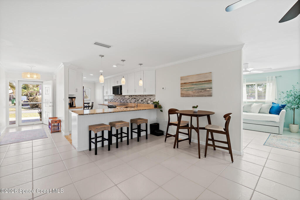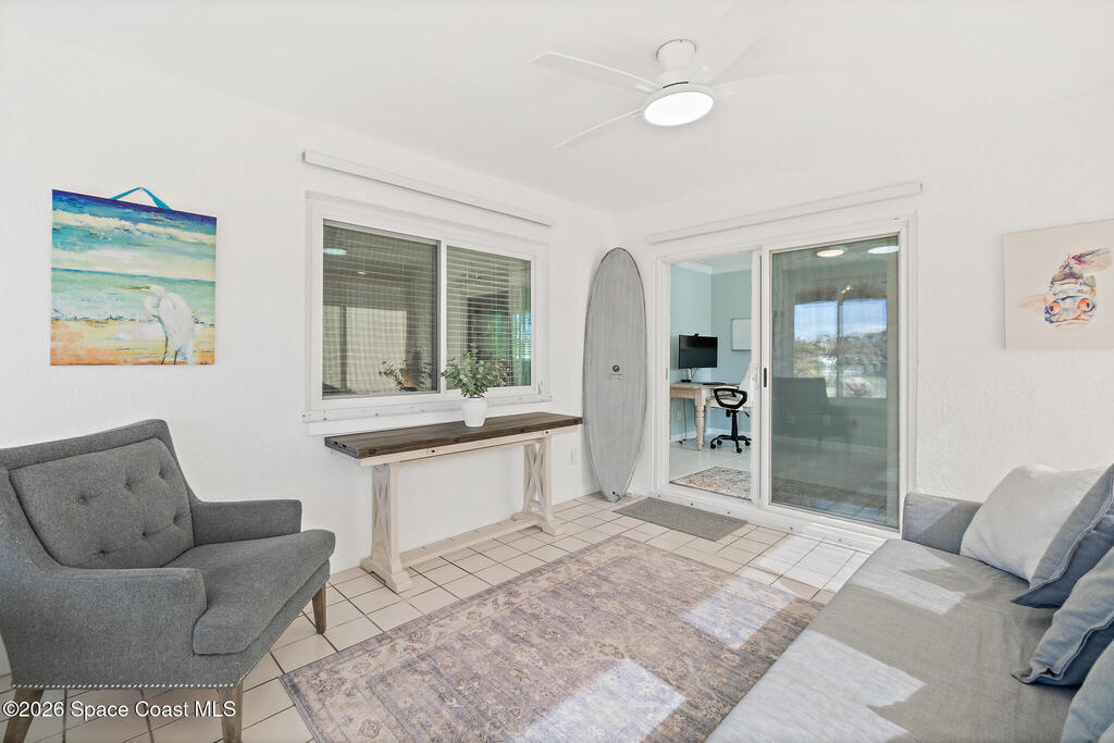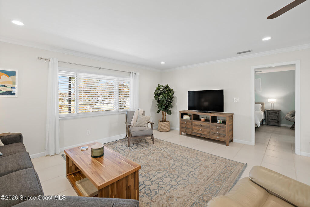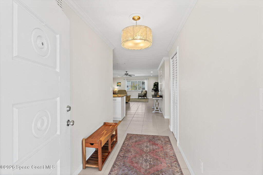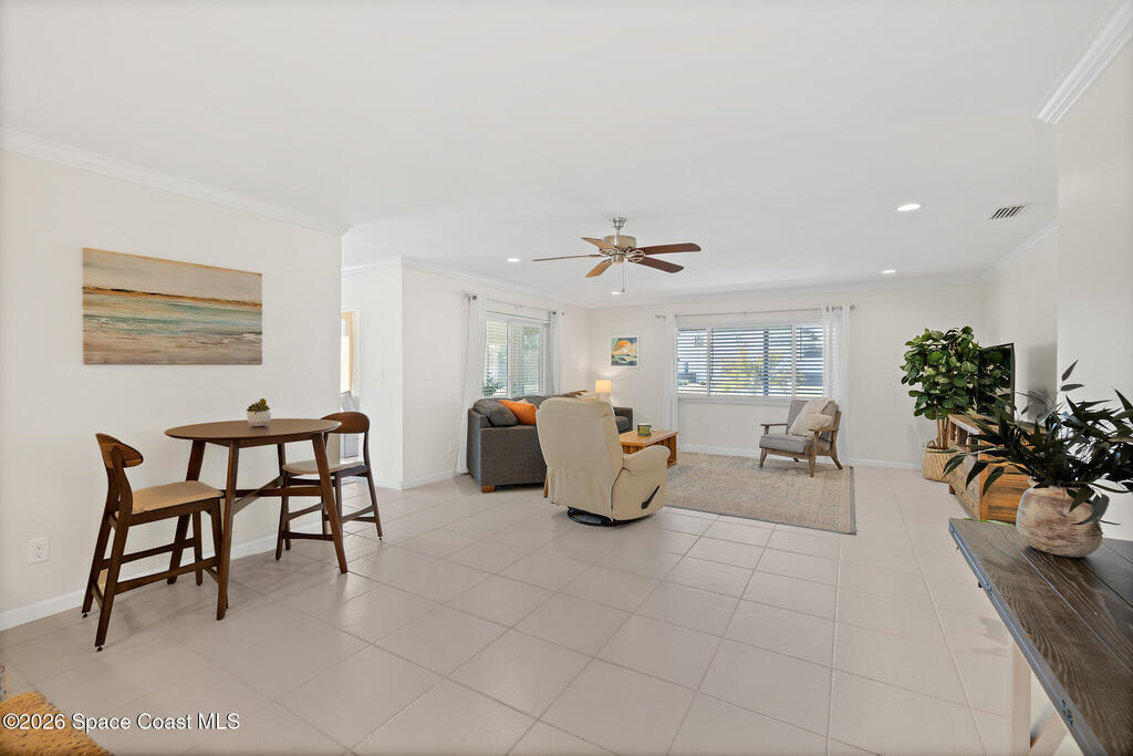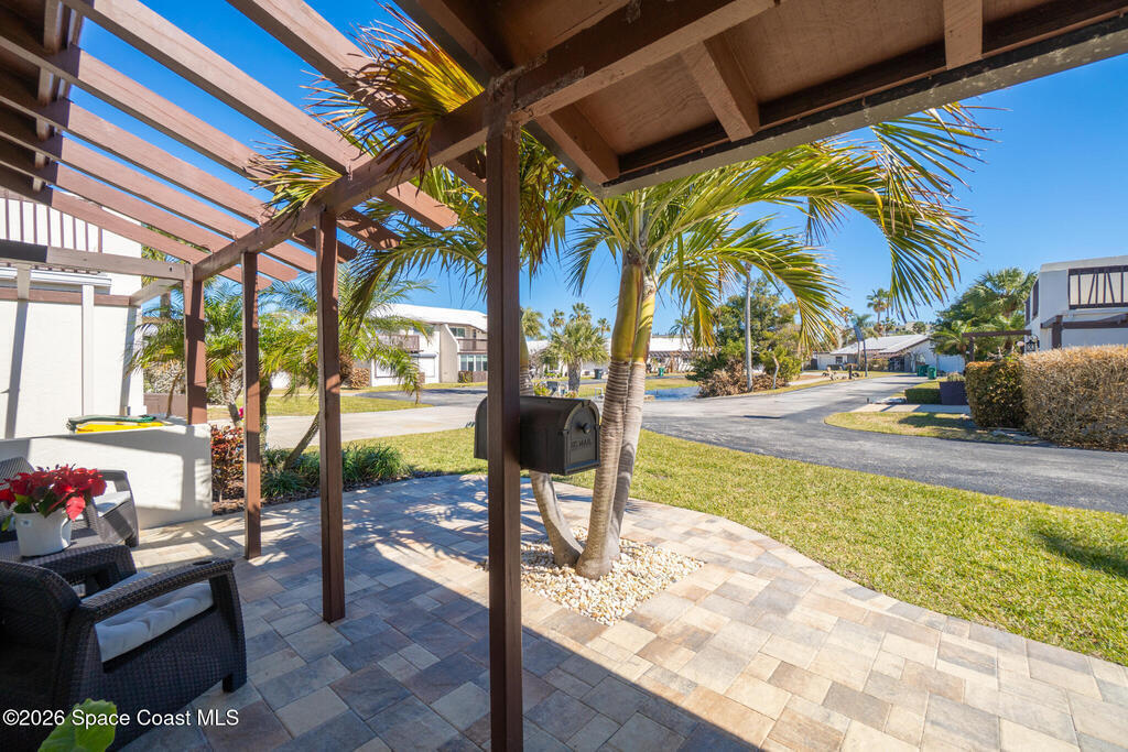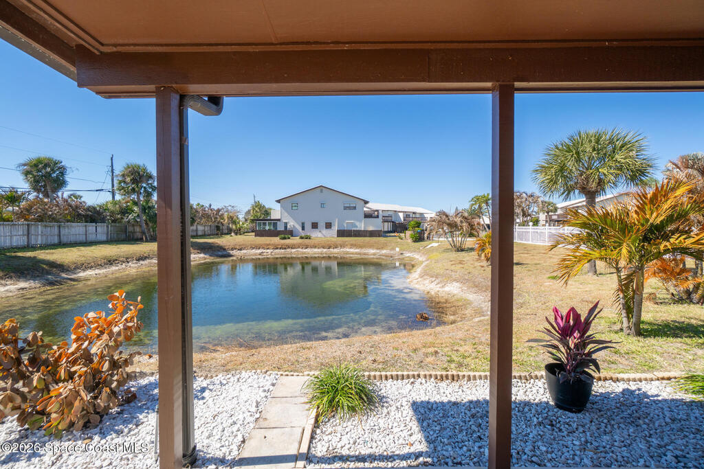 Welcome to beach living at its finest with this beautiful end-unit 2-bed, 2-bath + flex space townhome. This single-level gem is bathed in natural light, thanks to abundant impact windows (2020), offering an inviting atmosphere that feels more like a standalone home. Inside, discover 2 spacious bedrooms with ample storage, a versatile flex space perfect for an office or guest room, and an enclosed Florida room with new 2024 ceiling and fan that invites you to unwind and watch birds by the pond. The eat-in kitchen, light and bright with elegant finishes. Skyline Estates is pet friendly and less a 5 min. walk to the beach. Recent upgrades include new AC and hot water heater (2023), air handler (2024), ductwork (2025), tile roof (2000), flat roof (2021), and storm shutters, front door, and garage door (2022). The spacious 1-car garage and paver driveway/patio (2024) offer plenty of parking. Move-in ready, this turnkey home is ideal for anyone seeking a vibrant life on the beach