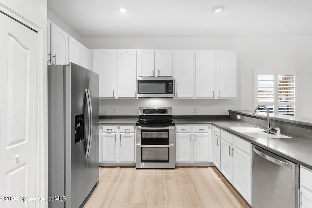Freshly painted from baseboards to ceilings w/ new LVP flooring underfoot, this home pairs easy, updated comfort w/ the breezy, low-maintenance rhythm of Alamanda Key, a gated Key West-inspired 55+ community just a few miles from Melbourne's shoreline. With a 2019 metal roof & hurricane shutters, peace of mind comes standard, leaving more time for the good stuff: morning walks or bike rides along wide lakefront path & afternoons spent poolside or soaking in the spa. The island-style clubhouse keeps the calendar full & the vibe casual, with an activities room & catering kitchen for potlucks & parties, a library for quiet resets, a fitness room + tennis courts to stay strong. With just 184 homes, the neighborhood feels intimate & welcoming & the social scene makes it easy to plug in, from card & bridge groups to book club, & community get-togethers, all close to shopping, dining, golf, arts & culture, & the everyday convenience of I-95 for easy exploring.