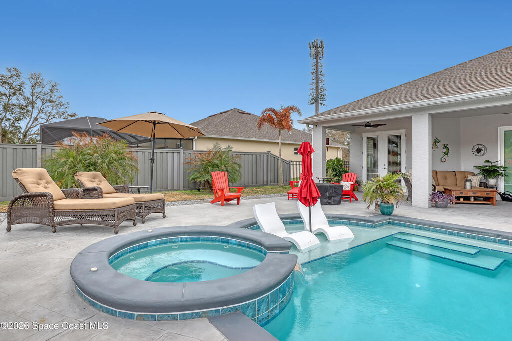 What a unique opportunity to own a nearly BRAND NEW pool on almost an acre with city water & sewer! No expensed spared in this custom built masterpiece. $120, 000 pool package! Tropical heated pool w/built-in hot tub spa & waterfall. Also has nice beach area & umbrella & chairs stay! Stamped concrete decking everywhere. 20x10 man cave building behind pool & it's all completely fenced w/Trek fencing! The property is huge beyond the pool w/nobody behind you. One of a kind backyard setting. Must see. Incredible island kitchen w/42' shaker cabinets w/crown, stone tile backsplash, high quality appliances & quartz countertops. Perfect floor plan w/10ft ceilings throughout. Luxurious primary suite w/huge walk-in shower w/dual heads, double walk-in closets & dual vanities. 8ft doors throughout. Security system w/3 cameras. The list of extras goes on and on. Super convenient location close to everything. Special home, pool & property that you won't find anywhere else at this price! Don't wait.