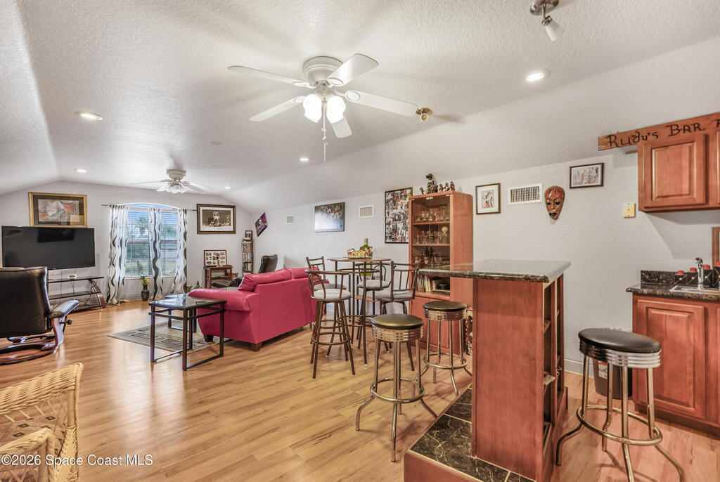 Situated on a full acre in the gated community of Rockledge Acres Estates, this 5-bedroom, 3-bathroom home offers space, privacy, and long-term pride of ownership, with only one owner in over 20 years.The home features tile flooring throughout the main living areas and wood flooring in the guest bedrooms and primary suite. A spacious kitchen opens to a separate dining area, ideal for holiday gatherings and entertaining. An upstairs loft with its own bathroom and closet provides flexible space for an entertainment room, guest suite, or home office.The primary suite includes his-and-her walk-in closets, dual tiled showers, and a jetted jacuzzi tub. Additional highlights include a three-car garage and a detached garage perfect for boat storage or extra vehicles.This rare property combines acreage, functionality, and gated community living in a highly desirable Rockledge location.