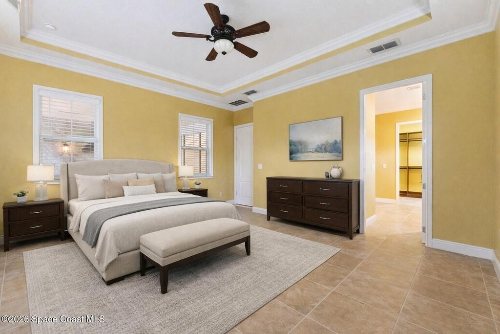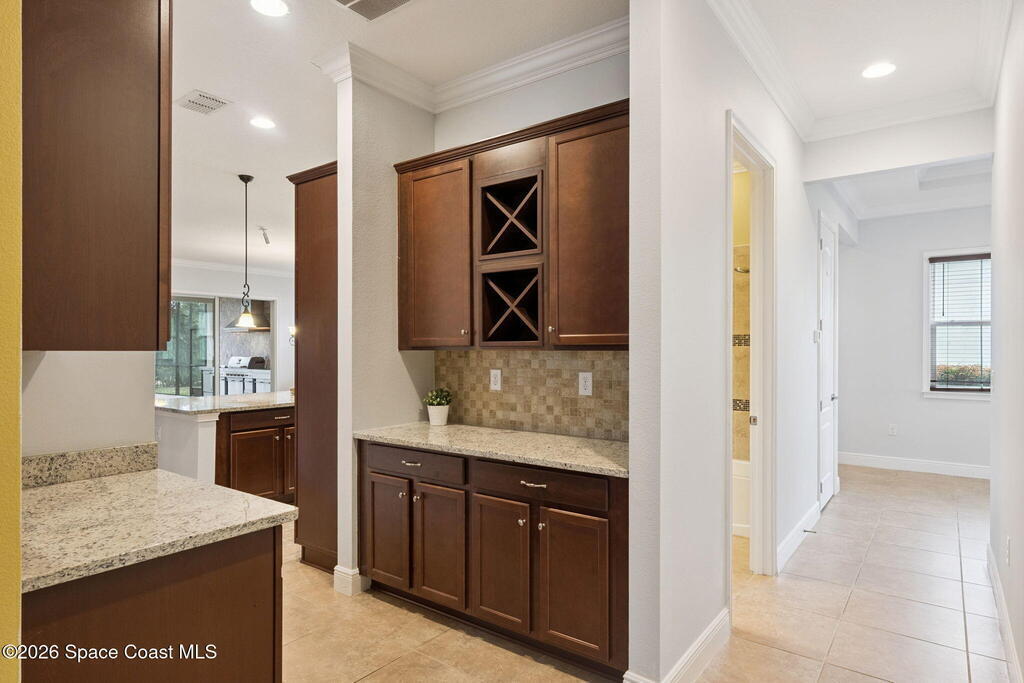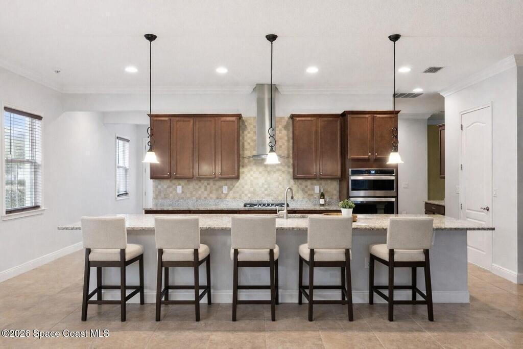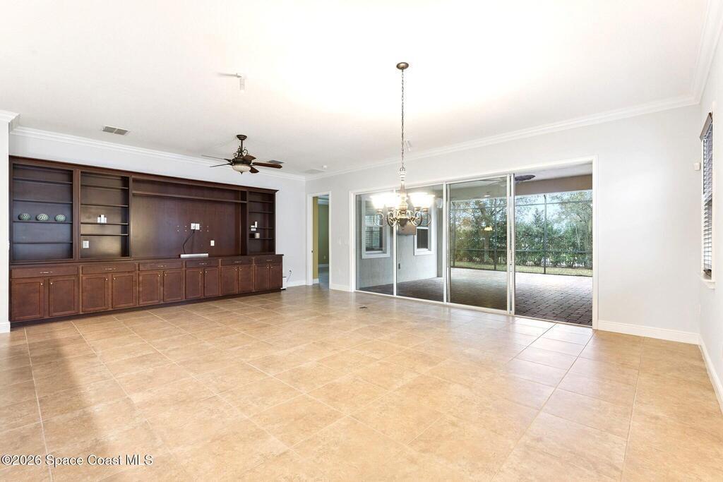 Stunning Del Webb home in the highly sought-after Twin Lakes gated 55+ community, where resort-style amenities and active adult living create the perfect Florida lifestyle. This beautifully designed Marco model is a 3-bedroom, 3-bath home with over 2, 300 square feet of living space that offers the ideal balance of comfort, elegance, and functionality. As you enter, you're welcomed into a spacious entry foyer that leads into an open floor plan showcasing tall ceilings and crown molding throughout! The living room showcases a panoramic view of the screened lanai and features custom built-ins, including an entertainment center and Bose surround sound system. At the heart of the home is a true chef's dream kitchen, complete with a beautiful center island, 42'' upper cabinets, gas range, built-in oven, butler's pantry, and walk-in pantry. Whether hosting guests or enjoying a quiet evening in, this space was made to impress. A versatile den provides the perfect setting for a home office,