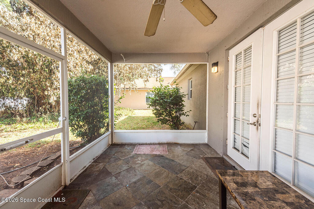 Welcome to The Woods at LaCita - Phase 2, a gated golf course community offering beauty, comfort, and convenience. This stunning 1, 800+ sq. ft. home is nestled in a lush tropical setting and features laminate flooring throughout, a newer A/C and water heater, and a spacious primary suite with a relaxing jetted tub. Enjoy Florida living year-round on the fully screened back porch -- perfect for morning coffee or evening gatherings. Residents have access to a community pool and the serenity of golf course living. Ideally located just minutes from Playalinda Beach, about 10 minutes to the Kennedy Space Center, 30 minutes to Orlando International Airport, and close to major roadways. This is Florida lifestyle at its best.