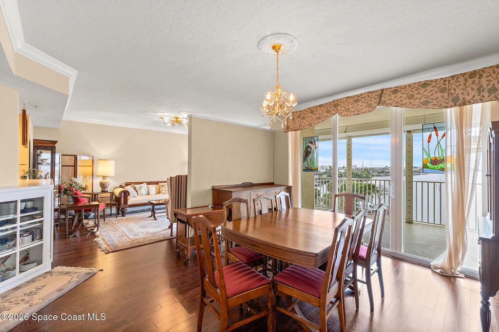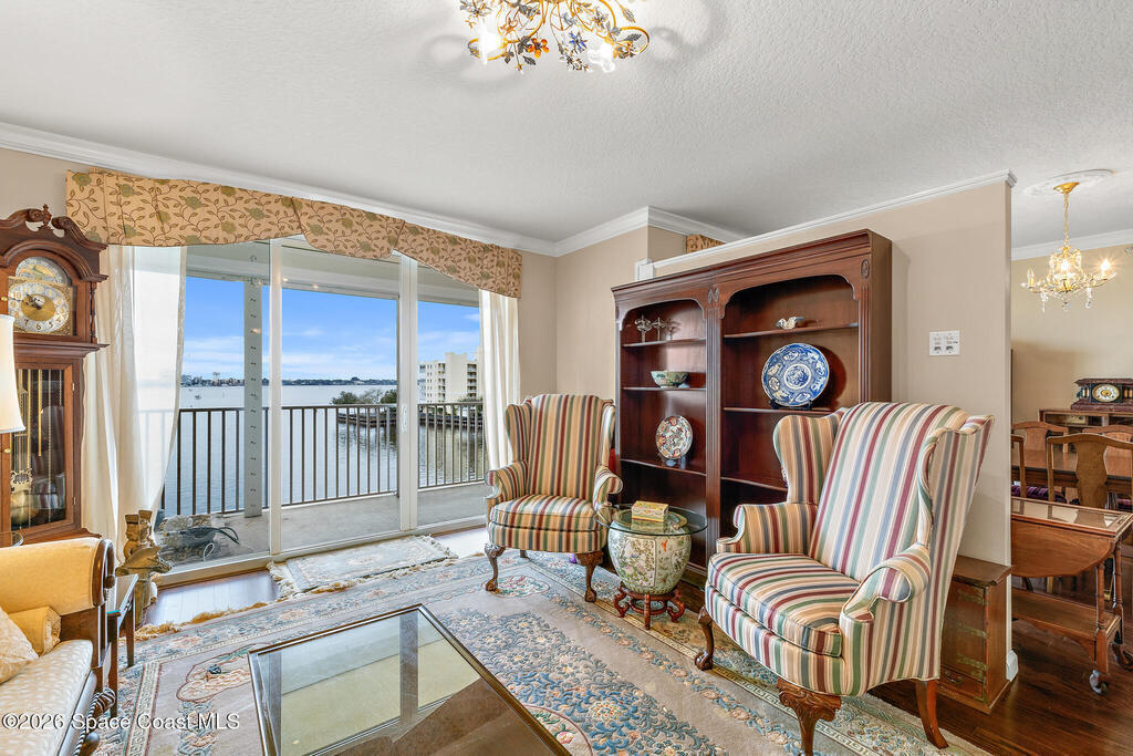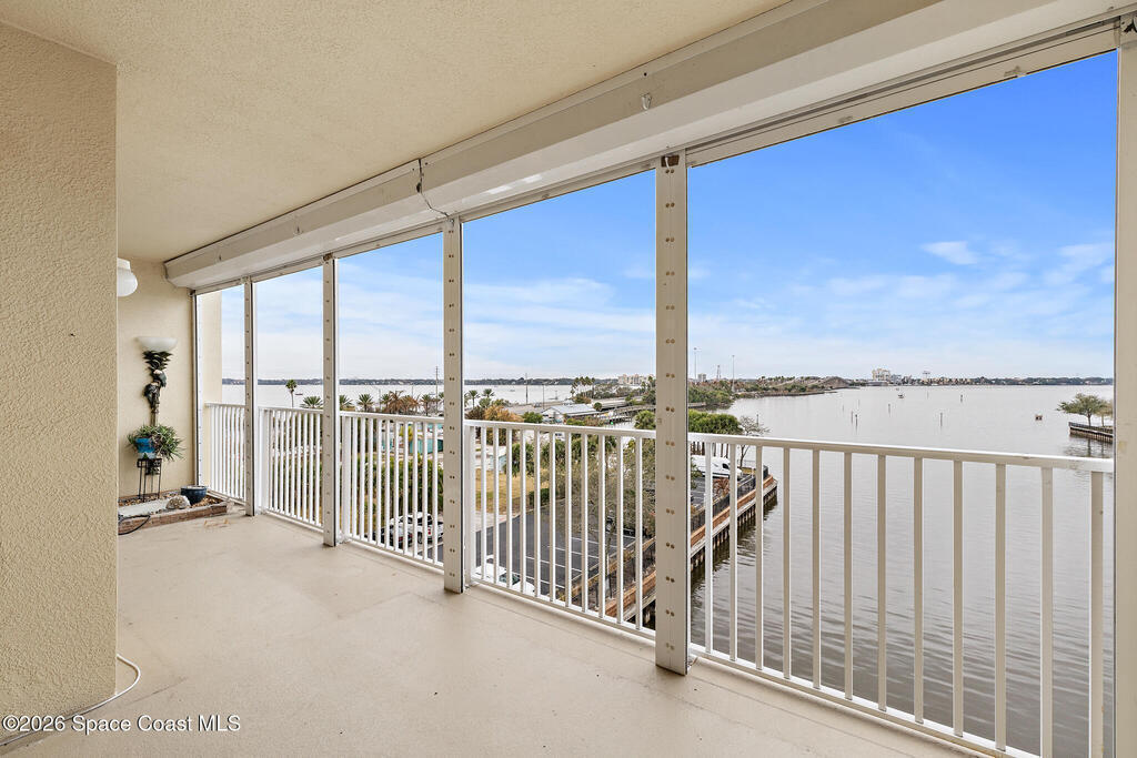 Discover this stunning 4th-floor condo with breathtaking DIRECT INDIAN RIVER VIEWS in the exclusive gated Island Pointe community! This former model unit presents 2, 275 sq ft of refined living with 3 generously-sized bedrooms, 2 updated bathrooms with custom hand-painted tiles, and a welcoming family room. Enhancements include brand-new AC (2023), roof (2024), custom built-in display cabinetry, elegant wood and tile flooring throughout, expansive closets, and electric storm shutters. The spacious balcony patio offers remarkable rocket launch & wildlife views--watch the dolphins and manatees! Resort-style amenities feature two heated pools, two tennis courts, pickle-ball, clubhouse, fitness center, spa, and sauna. Ideally located near Historic Cocoa Village shopping, renowned beaches, Port Canaveral, and the Kennedy Space Center. Convenient access to I-95 and Highway 528 links you to Orlando attractions, airports, and Space Coast destinations. Your tropical retreat awaits!