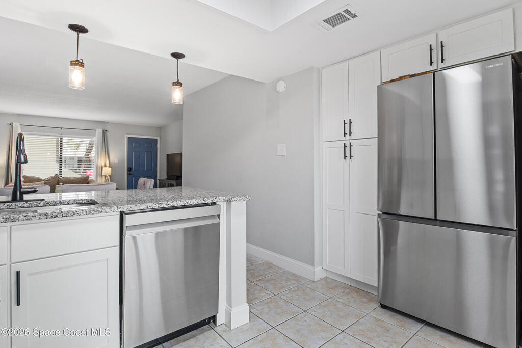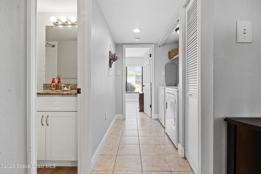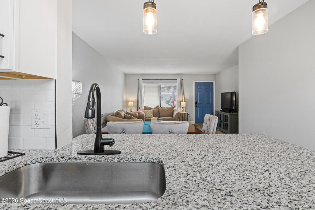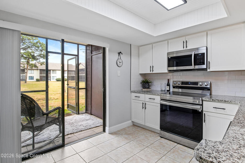 Beautifully remodeled 2BR/2BA ground-floor condo located in the heart of Rockledge with direct views of McLarty Park. This updated unit features tile flooring throughout, fresh interior paint, new doors and baseboards, window blinds, indoor laundry, and a covered carport conveniently located across from the unit. The kitchen offers granite countertops, subway tile backsplash, white shaker soft-close cabinets, stainless steel appliances, pantry, and breakfast bar with pendant lighting. Both bathrooms have been refreshed with new vanities and granite countertops. Enjoy the screened and covered back patio with private storage. Community amenities include a pool and tennis courts, with direct walkability to a premier public park featuring playgrounds and sports fields. Almost all utilities are included, with the exception being electricity! Pets accepted on a case-by-case basis!