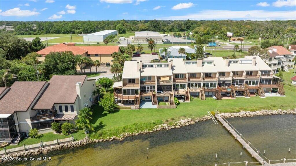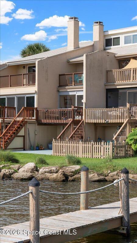 Wake Up to Shimmering Sunrises on the Indian River & End Your Day Watching Unforgettable Rocket Launches From Your Own Balcony! The Condos Recent Updates Include: Hurricane Doors, Windows, Shutters, Flooring, Paint, Remodeled Bathrooms & Fixtures. This Multi-Story Unit features 45ft Deep Garage w/ Door Height Modification to Accommodate Larger Vehicles or Boat, Impact Slider & Epoxy Flooring Plus Storage. Main Living Areas Showcase Natural Light from the Screened Porch, Sundeck, Dining & Living Combo w/ Cozy Fireplace! The Kitchen Features Granite Countertops & SS Appliances. Master Suite w/ Balcony, Double Closets, Tiled Shower, Glass Doors & Spacious Vanity. The Second En Suite Bedroom Has a Gorgeous Tiled Shower & Plenty of Storage! Need more storage or an office? The Spiral Staircase Leads to a16x20 Loft! Riveredge Offers Panoramic Water Views from the Community Dock! A Solid Association that Upkeeps the Beautiful Grounds & Has Maintained the Condos Exterior Integrity!
