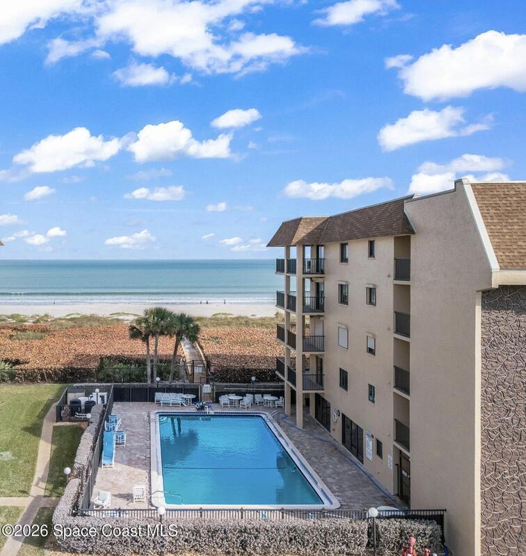 The minute you walk into this breathtaking 1, 222 sq ft direct oceanfront condo in the highly sought-after ''Canaveral Sands, '' you will fall in love! This completely turnkey, furnished 2-bed, 2-bath coastal retreat is on the 4th floor, offering unobstructed Atlantic Ocean views. Step onto your oversized 10x21 private balcony, the perfect sanctuary for morning coffee, sunset cocktails, or front-row seats to Kennedy Space Center launches and cruise ships. The spacious open family and dining area is designed for entertaining, featuring a granite wet bar with sink and storage, plus a breakfast bar. If you love to cook, the upgraded kitchen boasts expansive granite countertops, solid wood cabinets, and premium appliances including a refrigerator, dishwasher, range, and built-in microwave. Flowing right through the kitchen is a convenient laundry room. Complete with an assigned detached garage for your car or beach gear, this is the ultimate Florida beachfront lifestyle!