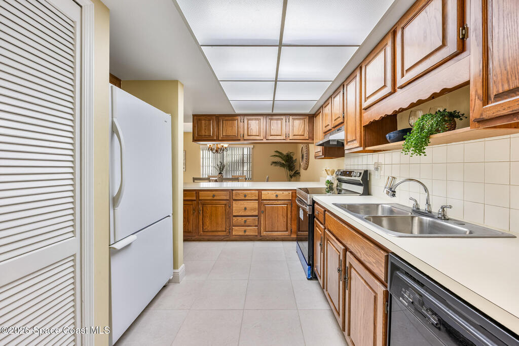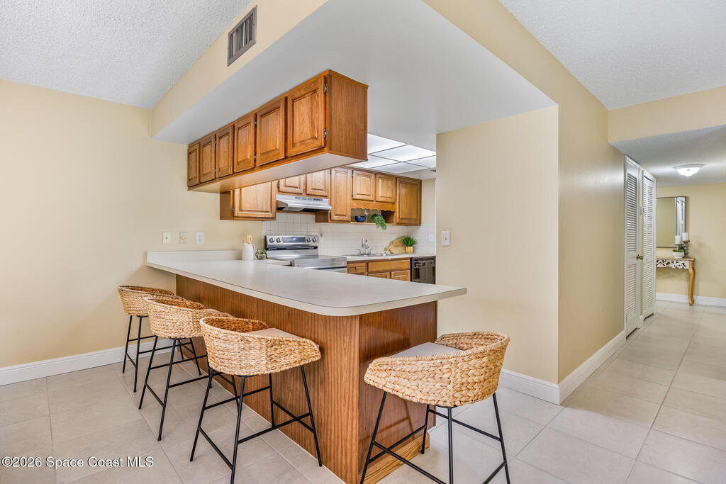 Looking for easy Florida living in a waterfront community? This charming 2 bedroom, 2 bath, 1430 sqft, ground floor condo with security gate is move in ready. Nestled across the street from the Indian River and minutes from Historic Cocoa Village, enjoy dinning, concerts, Cocoa Village Playhouse, shopping, antiquing, art festivals and more. The open living and dining area with extended breakfast bar and large enclosed patio with stacking sliders and screen enclosure are great for entertaining your family and friends. The spaciuos primary bedroom has an ensuite bath, featuring double sinks private shower and commode and ample size walk-in closet. Open the guest bedroom siding glass door onto your private enclosed patio and relax. In unit laundry. Community pool, clubhouse, boathouse, tennis courts and shuffleboard for your enjoyment. Assigned parking and guest space. New range, new dishwasher, A/C 2018, HW 2018.
