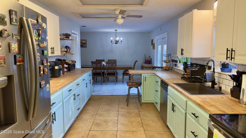 ***NEW ROOF BEING INSTALLED*** At 6310 Depot Ave in Cocoa this charming home features a partially renovated kitchen with beautiful butcher block countertops, freshly updated cabinetry, and stainless steel appliances that give the space a modern yet warm feel. The layout offers generous counter space and flows seamlessly into the dining area, making it perfect for everyday living and entertaining. Step outside to a spacious, fenced backyard with plenty of room to host gatherings, garden, or create your own outdoor oasis. The large yard offers privacy and endless possibilities.The inviting curb appeal showcases updated exterior accents and a welcoming front entry. Conveniently located within walking distance to a nearby park, this home offers both comfort and lifestyle appeal. With its functional layout, stylish kitchen upgrades, and expansive outdoor space, this property is full of potential and ready for its next owner.