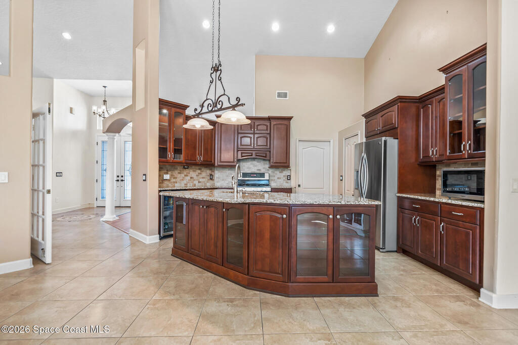 What to feel like Royalty, well walk into this entry way and you will have exactly that! Right off the entry you will have a sitting area that can also work as a dining room, your choice!!!! and straight ahead is another double door entrance to what was again for your choosing, they had it as an office, also a very nice and relaxing reading room, breakfast room or playroom for the children. As you are walking around you will see the beautiful kitchen with gas appliances, and a Beverage Cooler built in and a walk-in pantry. From there we have 2 bedrooms and a bath with exit to the back yard close to the Screen Patio. The Primary is at the other side of the house, huge room with his and her closets, the beautiful primary bath has been remodeled to have a huge walk-in shower, sitting area and additional closet, this is a must-see area! The backyard provides you with a serene morning or evening overlooking the pond. Check out the little fenced in privacy area outside!