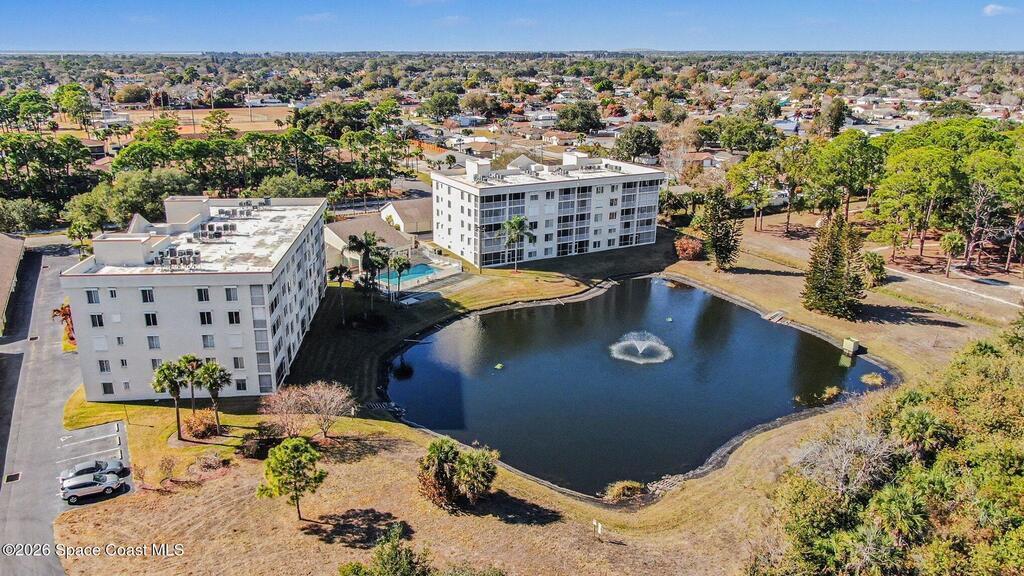 BRAND NEW LISTING! Enjoy peaceful waterfront views from this beautifully maintained 4th-floor 55+ condo, perfectly positioned within a serene, park-like community. This inviting residence features 2 bedrooms, 2 full baths and a 1-car garage, offering both comfort and everyday convenience. Wake up to tranquil water views and embrace a relaxed coastal lifestyle just minutes from Port Canaveral, vibrant Viera, the Space Coast Beaches and easy access to Orlando. Whether you're dining, shopping, cruising, or catching a rocket launch, everything is within reach. The HOA provides exceptional value, including water, internet/WiFi and exterior building insurance, giving you added peace of mind. Milestone inspections are complete and the elevators have been updated--making this a smart and secure choice. Residents enjoy a welcoming clubhouse with a kitchen, library, and exercise room--ideal for social gatherings and maintaining an active lifestyle. This is waterfront living made easy!