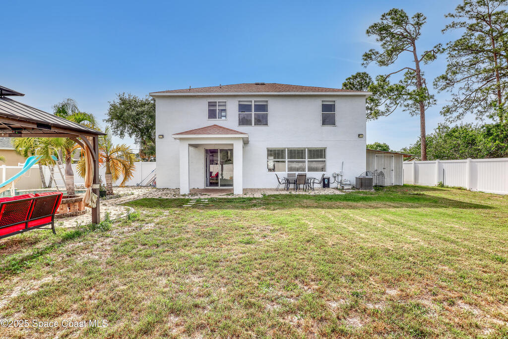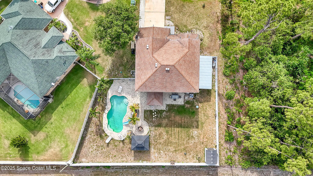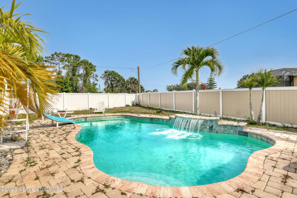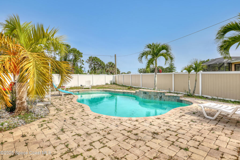 Discover your dream home in SE Palm Bay. This stunning 2006-built residence offers 2, 704 sq ft of completely updated living space, featuring 4 spacious bedrooms including a private mother-in-law suite and 3 full baths. Entertain your family and friends in your resort-style backyard oasis. Beautiful swimming pool, cascading waterfalls, and a shaded picnic area perfect for al fresco gatherings. Inside, you have tile floors and modern finishes flow throughout an open concept layout, with a new kitchen that boasts stainless appliances and ample counter space. Just a few minutes from I-95 for easy commuting, and surrounded by the best restaurants, shops, and amenities. Don't miss the chance to make this property your own slice of Florida paradise!