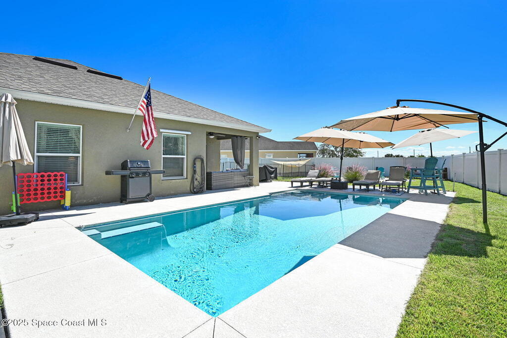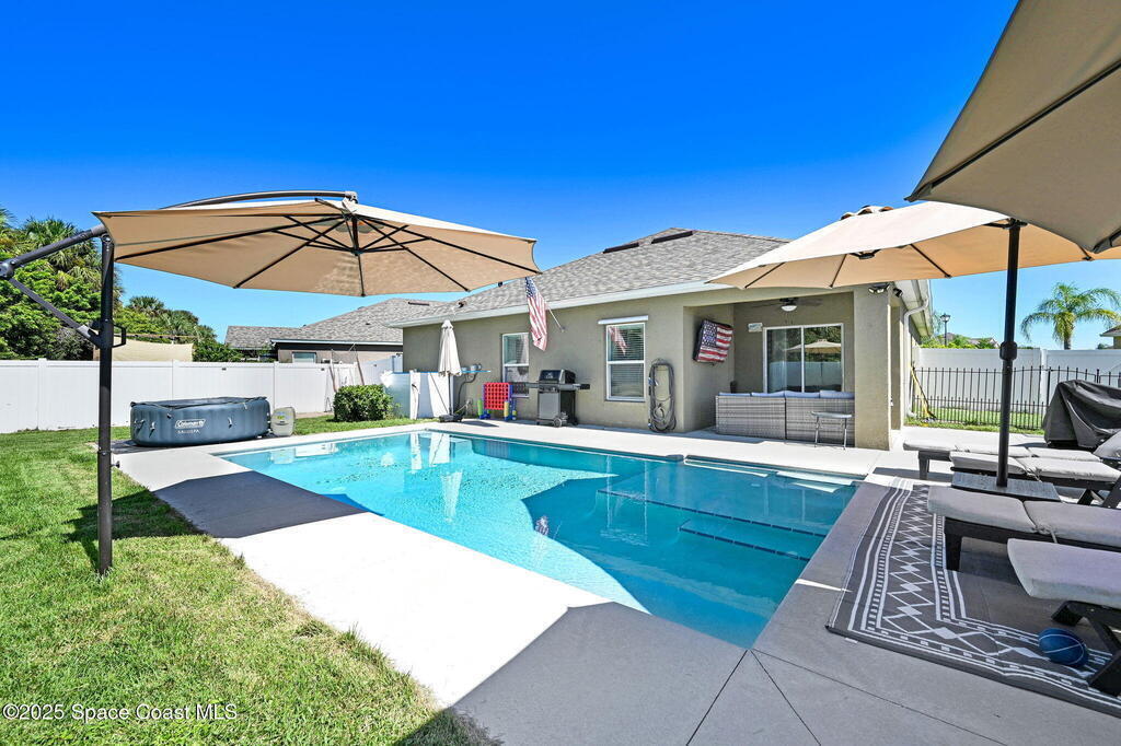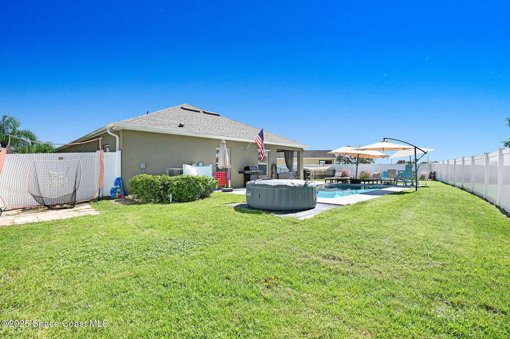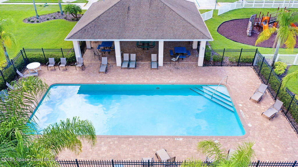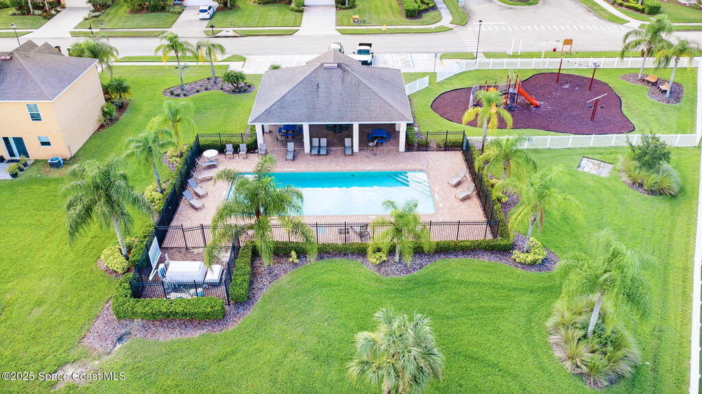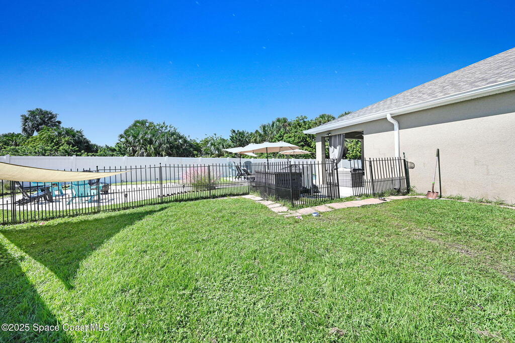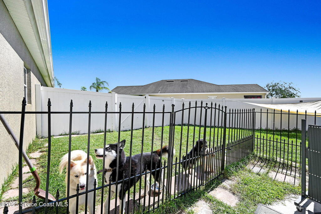 Seller MOTIVATED! RELAXED COASTAL LIVING! This POOL home has it ALL! It's on a RARE CORNER pie-shaped lot with NO rear neighbors. Extra green space between the adjacent home for EXTRA PRIVACY. RESORT STYLE, fully FENCED backyard OASIS w a NEW SALTWATER POOL, adorable BEACH AREA and even a DOG RUN for your furry family members. Inside are 3/2, and a spacious living and dining area. The kitchen is tucked away yet opens to the cozy family room, perfect for entertaining or everyday living. The large primary suite features a tray ceiling and a walk-in closet with built-ins. The primary bath offers double sinks, soaking tub, and separate shower. Prime location in a sought-after GATED Parkside West community near St. Johns Heritage Pkwy and Malabar Rd, close to the new Publix and Fred Poppe Regional Park with dog park, trails, pickleball etc. Only 30 min from our amazing BEACHES. Major updates: Roof 2024, A/C 2022, Pool 2024. THE BACKYARD IS UNFORGETTABLE. ONE LOOK and YOU'LL KNOW THIS IS IT!