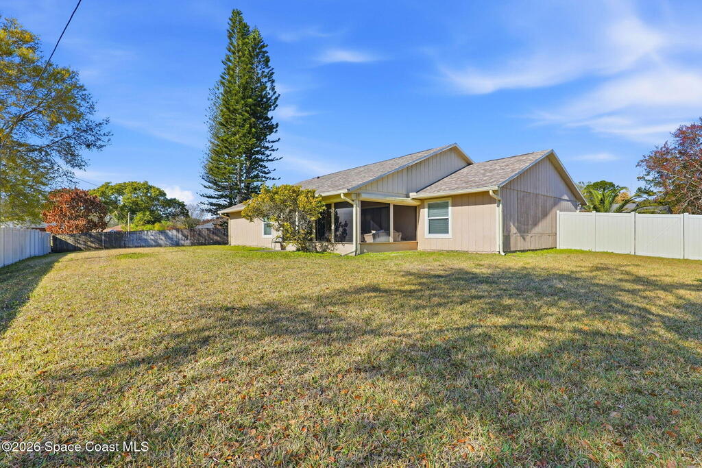 Welcome to this beautifully maintained and tastefully updated 3-bed, 2-bath home in desirable Southeast Palm Bay! New Roof & Water Heater 2025, HVAC 2021! Step inside to bright, open living spaces with a seamless flow, perfect for everyday comfort and entertaining. The updated kitchen features quality finishes and plenty of room to cook, dine, and gather. Spacious bedrooms offer rest and flexibility, while the refreshed baths add a modern touch.Outside, enjoy a generous backyard ready for outdoor living and future upgrades. Ideally located near shopping, dining, parks, and just a short drive to Space Coast beaches, this move-in ready home blends style, space, and convenience.