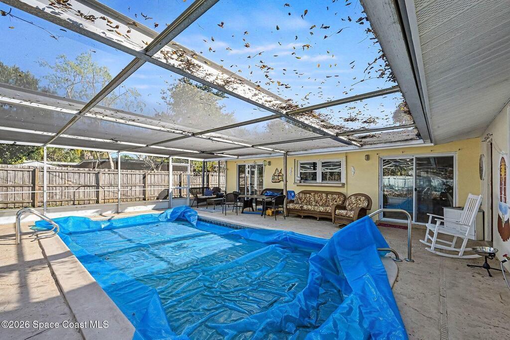Experience the Ultimate Florida Lifestyle in River Heights! This stunning 4BD/2BA pool home perfectly blends modern upgrades with a prime coastal location. Step inside to find a sun-drenched floor plan featuring Southern exposure that bathes the living areas in natural light. The heart of the home is a stylish kitchen with modern shaker cabinetry, complemented by durable tile and luxury vinyl plank flooring throughout--no carpet here! Entertainers will love the seamless indoor-outdoor flow, as dual sets of sliding glass doors lead from the family and dining rooms to your private backyard oasis. Relax by the sparkling pool, which boasts a Brand New 2024 screened enclosure, or enjoy the convenience of a dedicated ''pool bath'' access. Major Upgrades & Peace of Mind: NEW HVAC (2024) * New Roof (2018) with energy-efficient E-Shield insulation. Hurricane-rated front door & window protection. Fully fenced backyard with a metal storage shed. Low-maintenance ''Zero-scape'' mature landscaping.