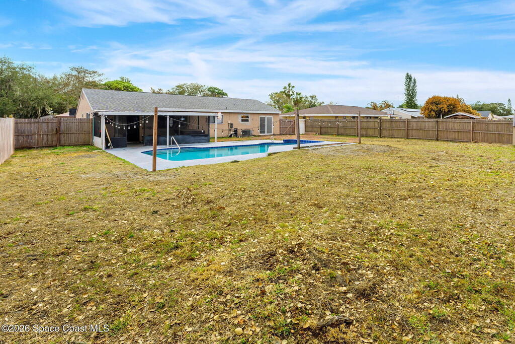 Welcome home to this move-in ready 3-bedroom, 2-bath home offering 1, 316 sq ft of comfortable living space. Tile flooring throughout and a freshly painted interior create a bright, low-maintenance feel. Major updates in 2023--including the roof, HVAC, hot water heater, and electrical panel & pool surface/equipment--provide peace of mind for years to come. Step outside to your private backyard retreat featuring a sparkling pool and screened patio with a hot tub that conveys, perfect for relaxing or entertaining year-round. The convenient & central location keeps you just minutes from shopping, dining, and everyday essentials. Ideal for first-time buyers, downsizers, or investors--this one truly checks all the boxes.