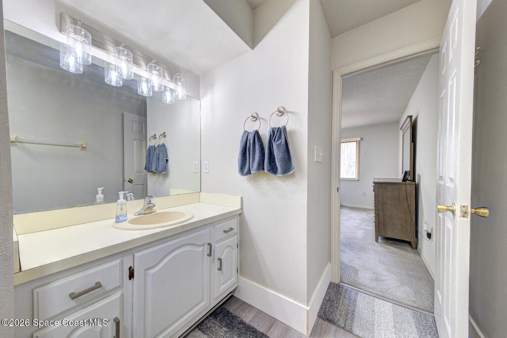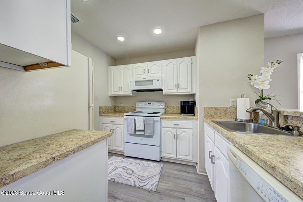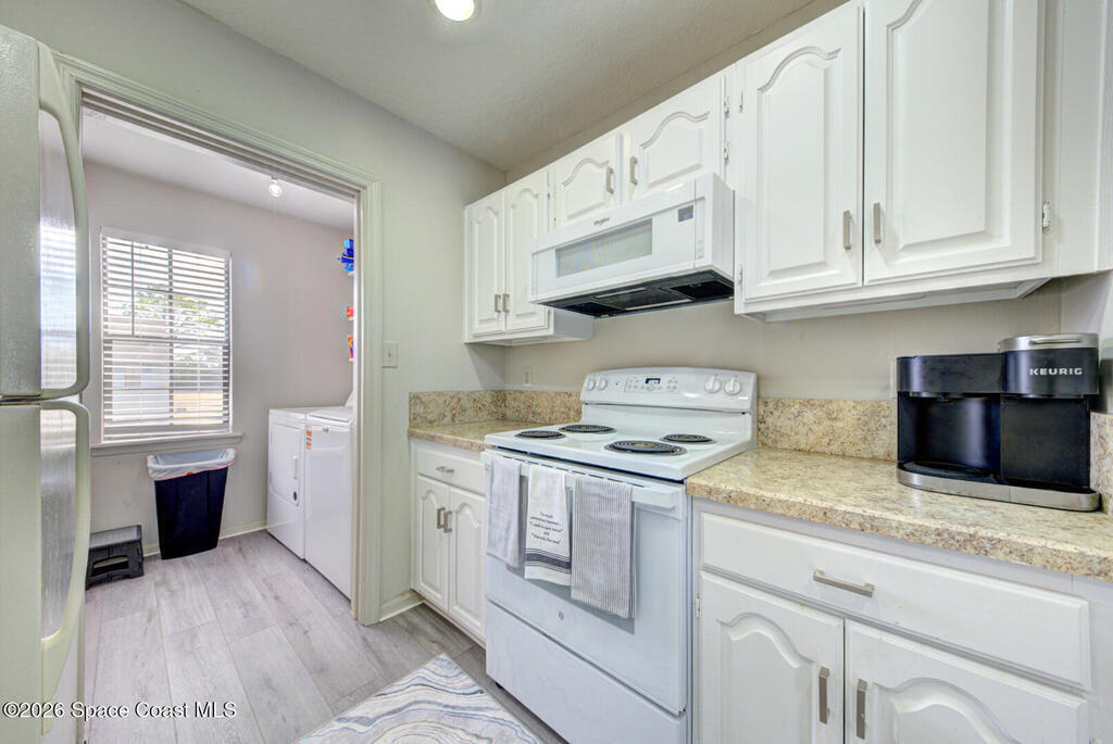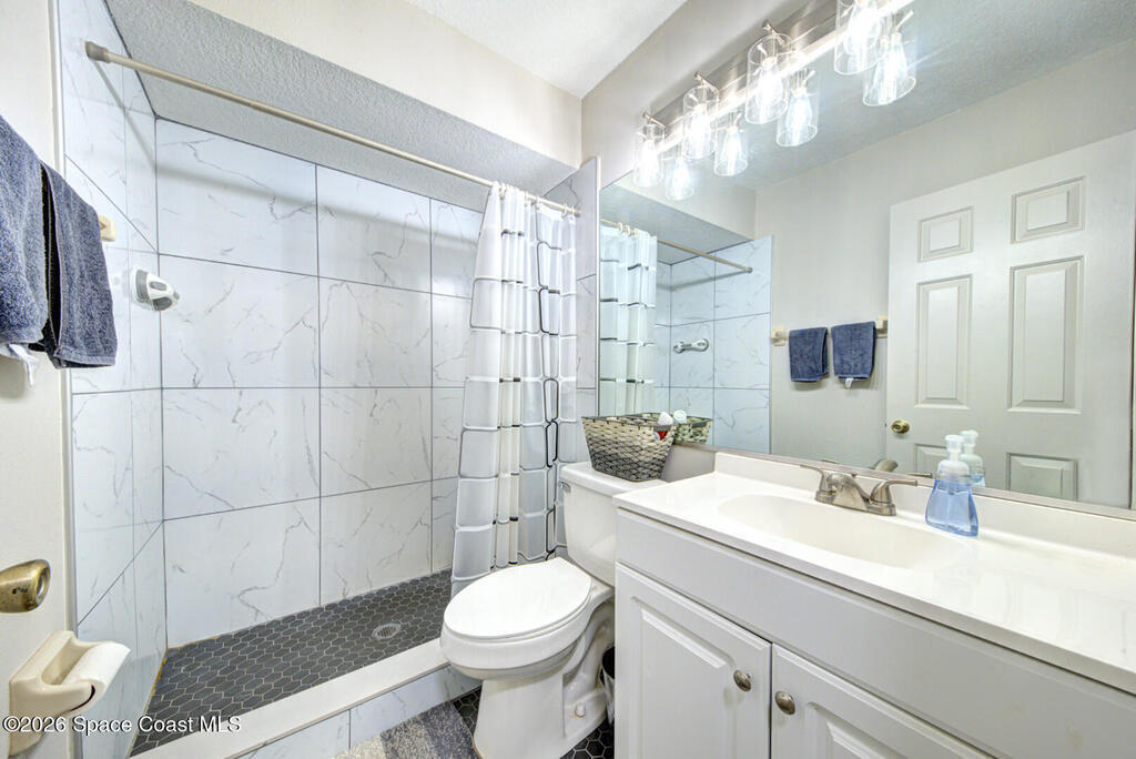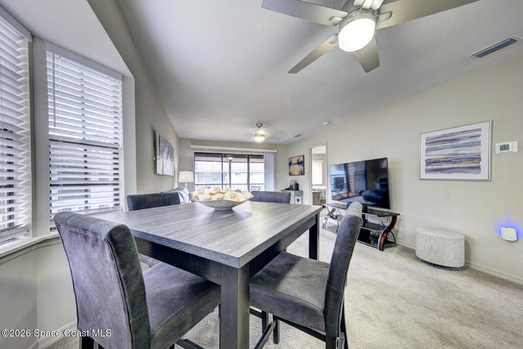 Well Maintained, Renovated 2 Bedroom 2 Bathroom Condo located on the second floor in Titusville. This unit has much to offer with its updated kitchen including new stove and microwave, new showers in both bathrooms, new flooring (Luxury vinyl plank, carpet & tile), new lighting, new ceiling fans, freshly painted, AC replaced 2025, new hot water heater. There is more it has an open floor plan, breakfast bar, laundry room (washer and dryer hookups), and a screen in back patio. This place is ready for its new owner. Low monthly condo fees ($335 monthly), heated community pool. It is within walking distance to grocery store, fitness center and more. This condo is worth taking a look at...