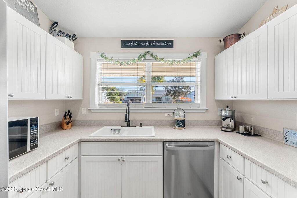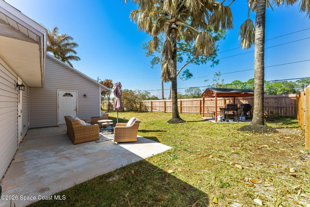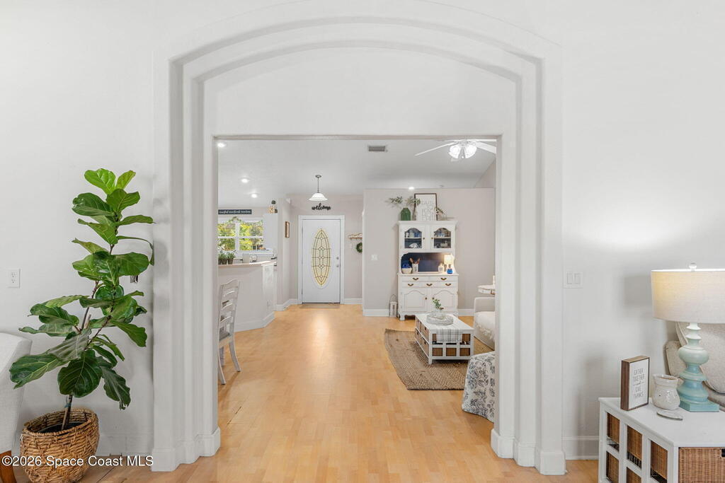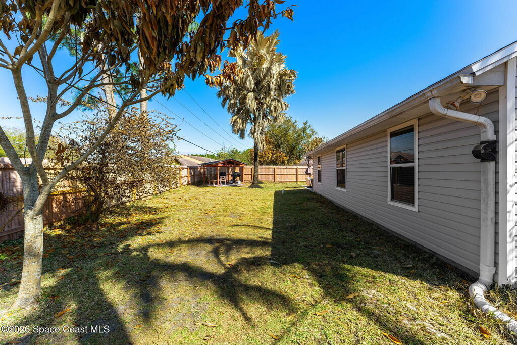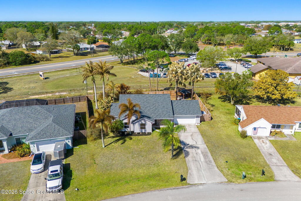 Welcome home to 449 Gilbert Drive NE in the heart of Central Palm Bay, where space, light, and comfort come together beautifully.Pulling up, you'll immediately notice the inviting curb appeal--mature palms, a wide driveway, and a side-entry two-car garage set on a generous .27-acre lot. This is the kind of property that gives you breathing room, with a fully fenced backyard and no HOA to limit your lifestyle.Step inside and you're greeted by soaring vaulted ceilings and warm wood-look laminate flooring that flows through the main living areas. The open floor plan creates an airy, expansive feel from the moment you enter. Rounded archways and soft natural light give the home character and warmth, while the layout offers flexibility for the way you live.The kitchen truly anchors the home. Crisp white cabinetry, new major kitchen appliances (May 2024), generous counter space, and a breakfast bar make it both functional and welcoming.