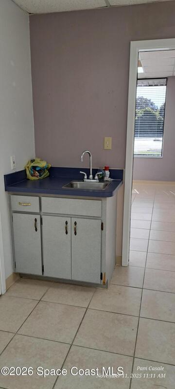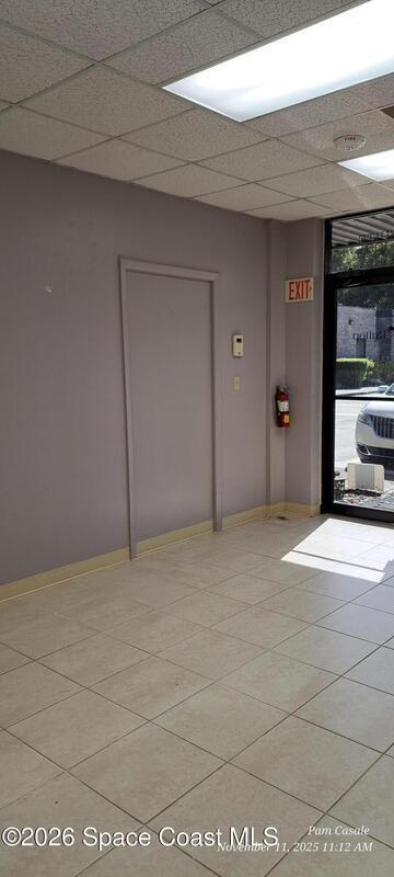 1300 Square ft office space with rear storage area and overhead garage door.