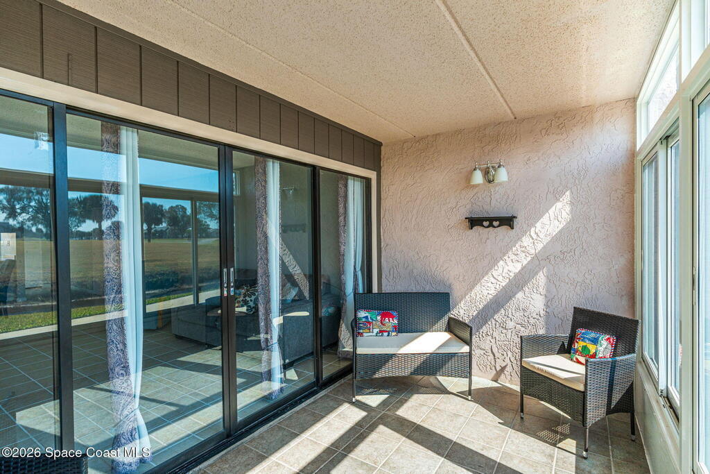 A rare find in Sun n Green - first floor, corner unit, and one of the larger 2 bedroom floorplans in the community. Wake up to sweeping golf course views and end your day with breathtaking Florida sunsets from your own glass-enclosed, tiled patio that truly feels like an extension of the living space. With 1, 205 square feet, this 2 bedroom, 2 bath condo offers spacious bedrooms, updated bathrooms, and a comfortable, open layout filled with natural light. Located in a welcoming 55+ golf course community, residents enjoy a heated pool, fitness center, sauna, and peaceful sunset walks along the course sidewalks. The HOA covers water, irrigation, cable, internet, laundry, exterior maintenance, roof, and common grounds - making everyday living simple and stress-free. All buildings received new roofs in 2025, adding even more peace of mind. Corner unit privacy. First-floor convenience. Low maintenance living with beautiful views. The staging furniture is negotiable. Set up your tour today!