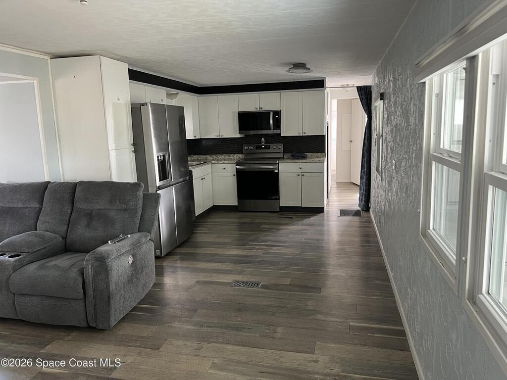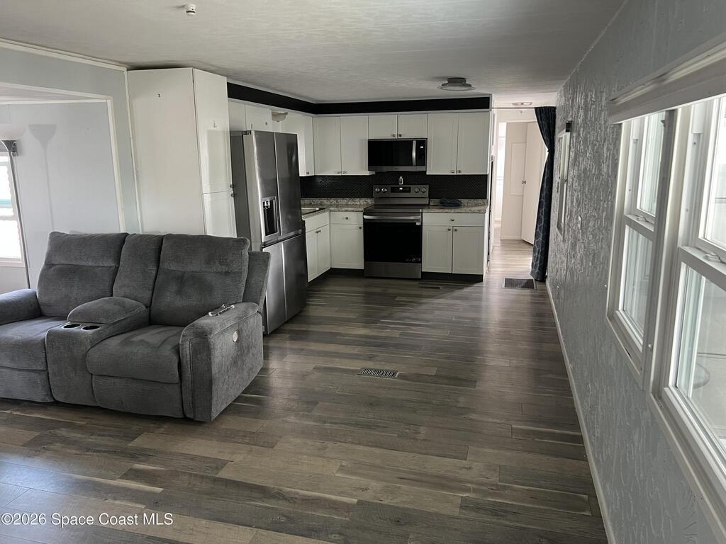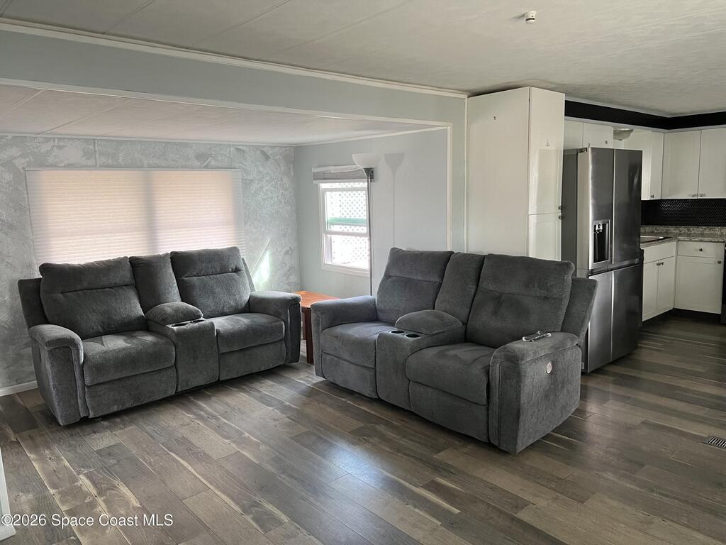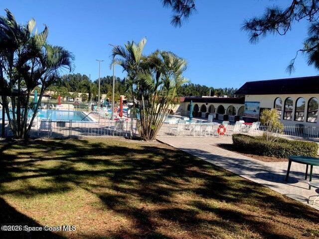 VERY WELL MAINTAINED 2 BEDROOM AND 2 BATHROOM HOME IN DESIRABLE AND GUARDED 55+ COMMUNITY IN NE PALM BAY LOCATED IN A NICE CUL-DE-SAC! HOME OFFERS NICE VINYL PLANK FLOORING THROUGHOUT, MODERN KITCHEN WITH STAINLESS APPLIANCES AND LOTS OF CABINETS AND GOOD LIGHTING THROUGHOUT. THE ENTRANCE (FRONT PORCH) HAS BEEN CONVERTED INTO A NICE SITTING AREA (FRONT ROOM) FOR ADDITIONAL LIVING SPACE. THERE IS A NICE STORGE SHED AND A VERY SPACIOUS SIDE PORCH. RENT INCLUDES LAWN MAINTENANCE, BASIC CABLE AND BASIC INTERNET PLUS THE USE OF ALL THE COMMUNITY CENTER FACILITIES WHICH OFFERS TWO POOLS, SHUFFLE BOARD AND MANY OTHER ACTIVITIES.