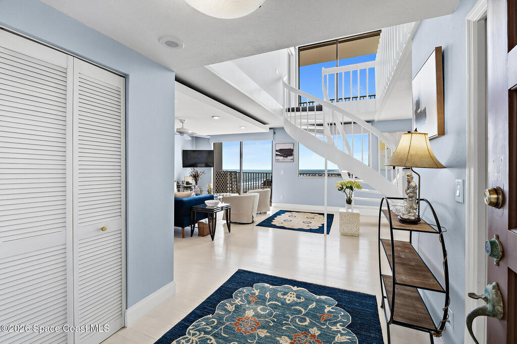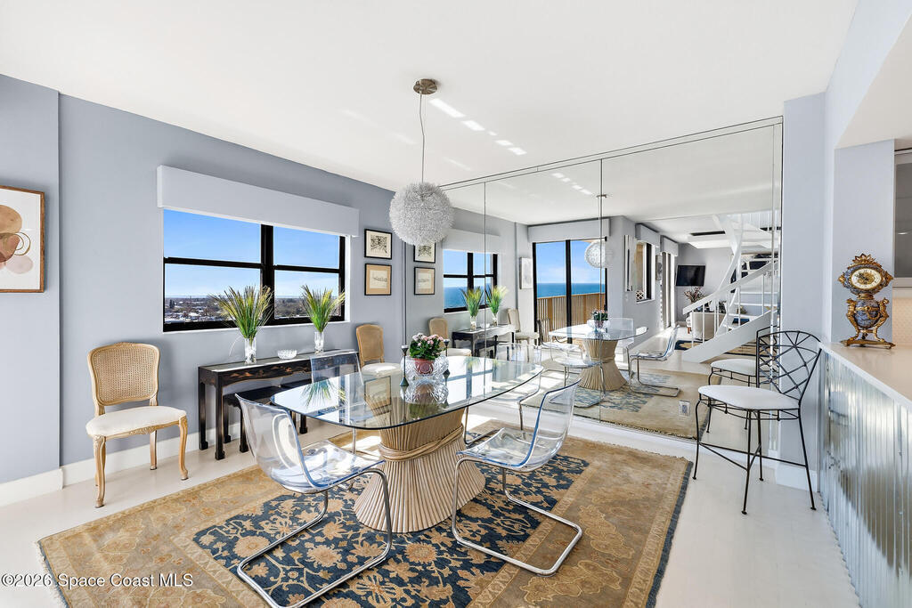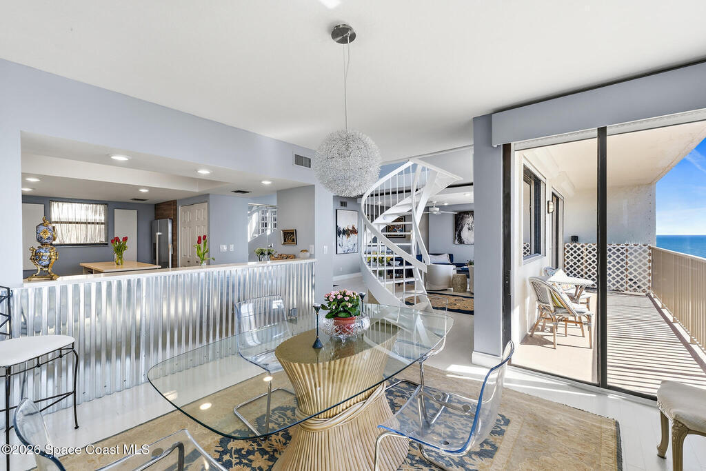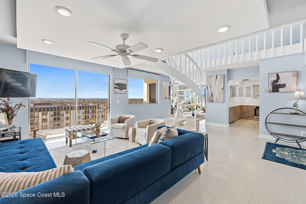 Exceptional TWO-STORY, FULLY-FURNISHED 2 bed, 2.5 bath OCEANFRONT condo on the 10th floor with breathtaking OCEAN VIEWS FROM TWO BALCONIES! Over 1, 900 sqft of refined elegance featuring a modern chef's kitchen with white ceramic glass electric cooktop, high-gloss quartz counters, spacious island, pantry, and cabinetry-flush stainless steel appliances. The open-concept living area impresses with a dramatic spiral staircase, sleek wood-tile flooring throughout, and direct balcony access showcasing sweeping ocean views. The generous primary suite offers his & hers closets, plush carpeting, en suite bath with dual marble sinks, and subway-tile shower. The guest suite also features a private en suite bath and balcony patio access. A versatile flex nook includes built-in desk and bistro bar. An upstairs laundry room provides convenience. Electric shutters, a private garage, and hurricane-rated windows and sliders add piece of mind. This is coastal luxury living redefined- a true MUST SEE!