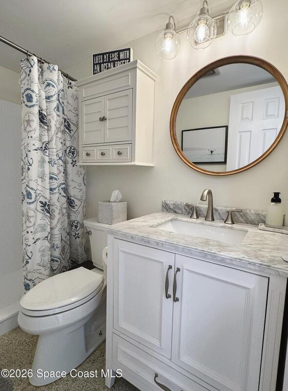 TURNKEY LUXURY...Fully Furnished To A High Standard. A much coveted 3 Bed, 2 Bath First Floor End Unit. Bring Your Boat...ONLY 4 MILES TO THE BEACH SURROUNDED BY RIVERS! Near SpaceX, the Port, Beaches, Dining with easy access to Orlando. Primary with walk in closet and private bathroom remodeled with designer quartz tops. The immaculately kept terrazzo is a beautiful light color, runs throughout and is in pristine condition=No Grout Joints To Scrub! Upgraded 6 panel doors and baseboards. Endless windows for natural lighting galore. Deeded carport close to entrance with room for a shed. A Truly Maintenance Free Living in a beautifully kept community with full time maintenance. Monthly fee covers maintaining/replacing co-op issued A/C unit & water heater, water/sewer, trash and property taxes. Cash only, Owner Occupants Only. No Rentals, No Air BnB.Buyer must submit Co-op application, credit check & board approval.