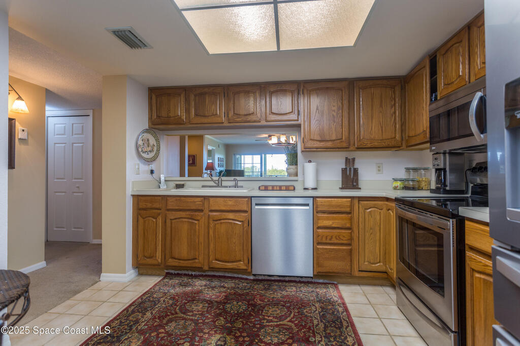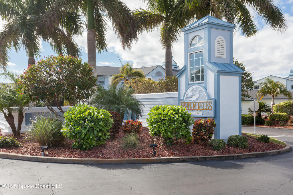 VERY RARE 2 PRIVATE-1 CAR GARAGES CONVEY!! Direct Riverfront with views of the Banana River and the Thousand Islands Preserve! You will enjoy watching marine wildlife from your condo all day, heron, dolphin, manatee, osprey and more! West facing unit with amazing sunsets. This well-maintained unit is ready for you. Primary bathroom has been beautifully updated with large walk-in shower and closet. Decorated in pleasing neutral tones to help you relax and enjoy the view. Plantation shutters throughout. Windows are high impact and storm shutters on the lanai. For the active lifestyle Harbor Isles Community offers 2 heated pools plus 1 heated lap pool, 2 tennis and pickleball courts w/ lights, sauna, exercise room, clubhouse, riverfront dock and free RV & boat storage. Ramp Road Park next door to launch your watercraft. The Atlantic Ocean is just 2 blocks away. Community conveniently located near Cocoa Beach Playhouse and Downtown Cocoa Beach for all your entertainment enjoyment!