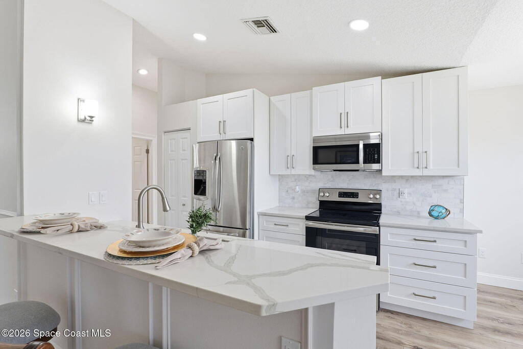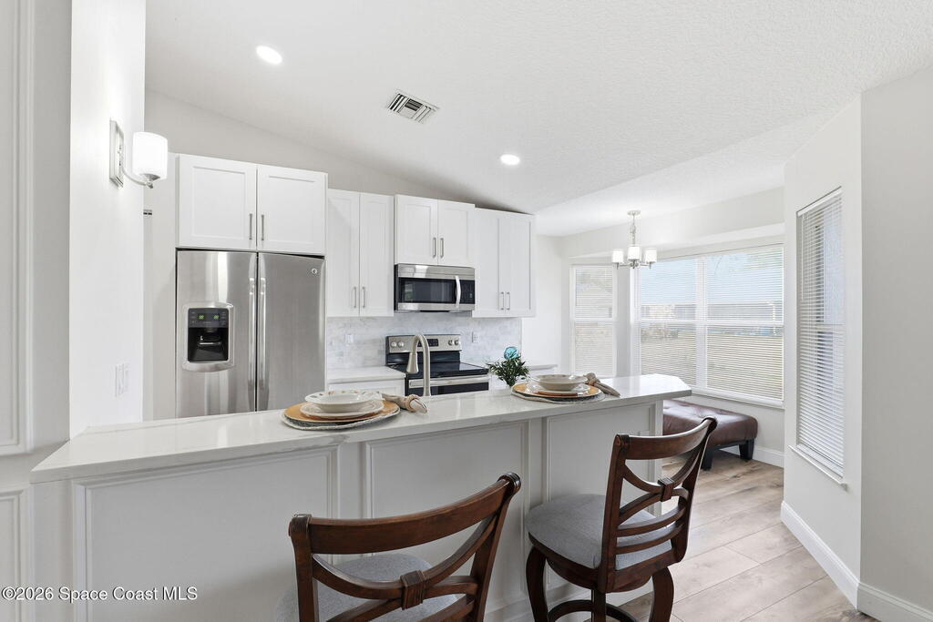 Freshly remodeled 3/2/2 on a quiet street in Vero Beach. Come check out the simple elegance this home has to offer with it's light filled living space featuring fresh finishes, updated flooring, contemporary fixtures and a stylish kitchen with new cabinets and countertops. Living area flows seamlessly offering great space for everyday living. Split floor plan and bathrooms boast modern vanities & finishes. Enjoy the outdoors on this .23 acre lot. Roof replaced in 2022. Can join Highlands HOA for pool access.