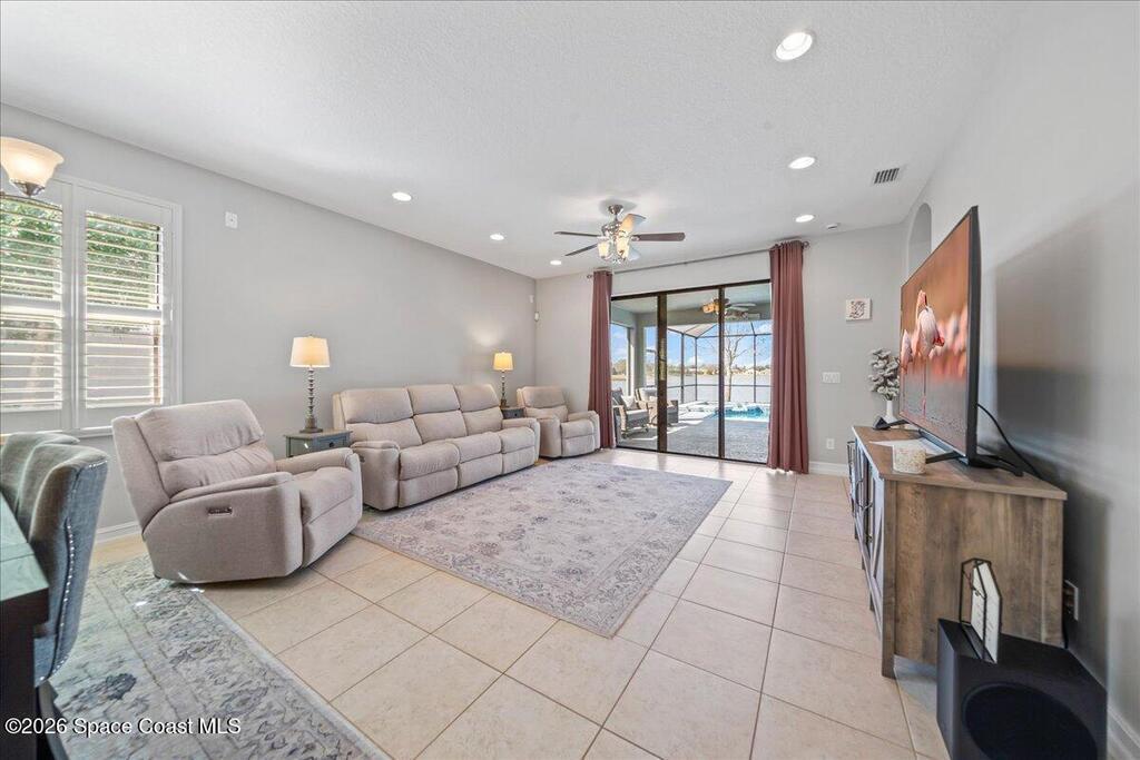This is the ONE! This West Viera upgraded home provides comfort, style, and the best of the Florida lifestyle in perfect harmony. This spacious 4-bedroom, 3-bathroom home PLUS a HUGE bonus room and a 3-car garage offers room for everyone to spread out, gather, and create lasting memories. Beautiful, stacked stone elevation. Whether you need a media room, playroom, home office, or guest retreat, the oversized bonus space gives your family the flexibility to live the way you want. Step outside and prepare to be wowed. The oversized, resort-style saltwater pool and screened enclosure were installed less than two years ago and truly transform the backyard into a private oasis. Enjoy the longest and deepest waterfront view currently available in Viera, a breathtaking backdrop of sparkling water and natural vistas that make every sunrise and sunset unforgettable. Designed with relaxation and entertaining in mind, the pool features built-in seating to soak in the serene views,