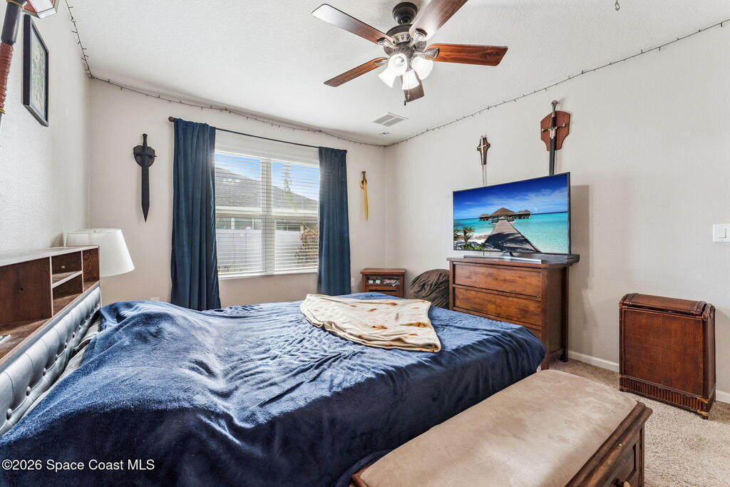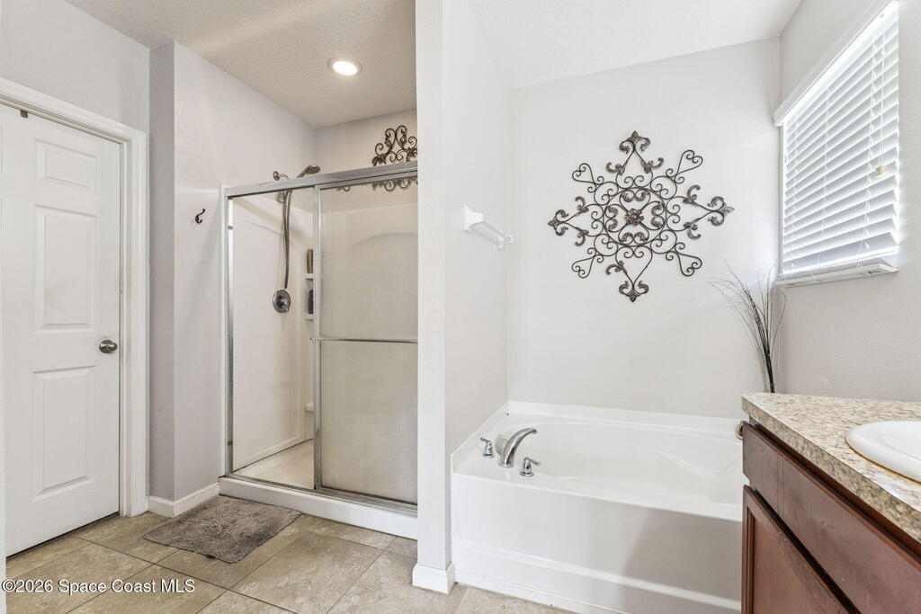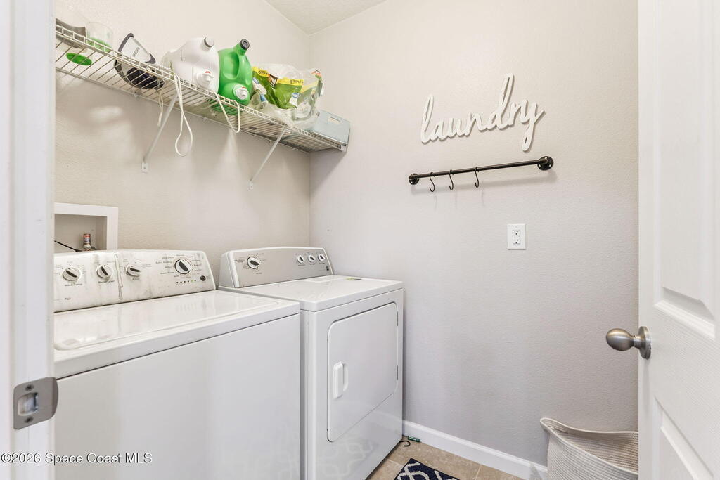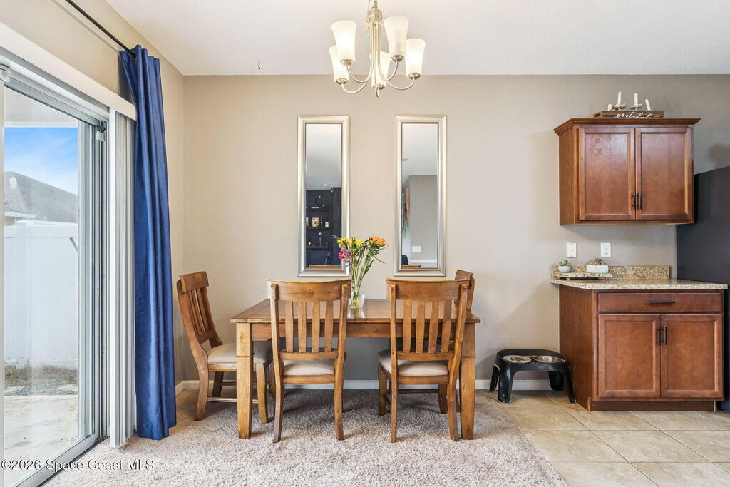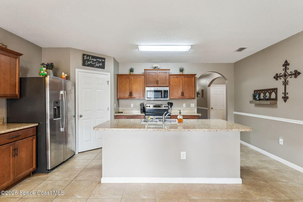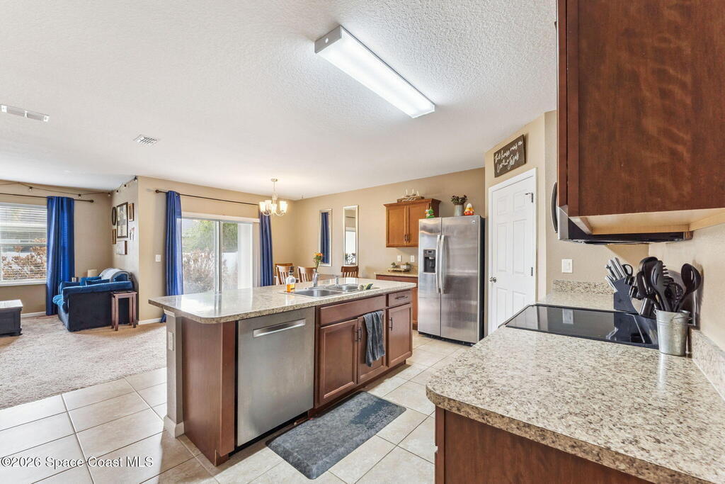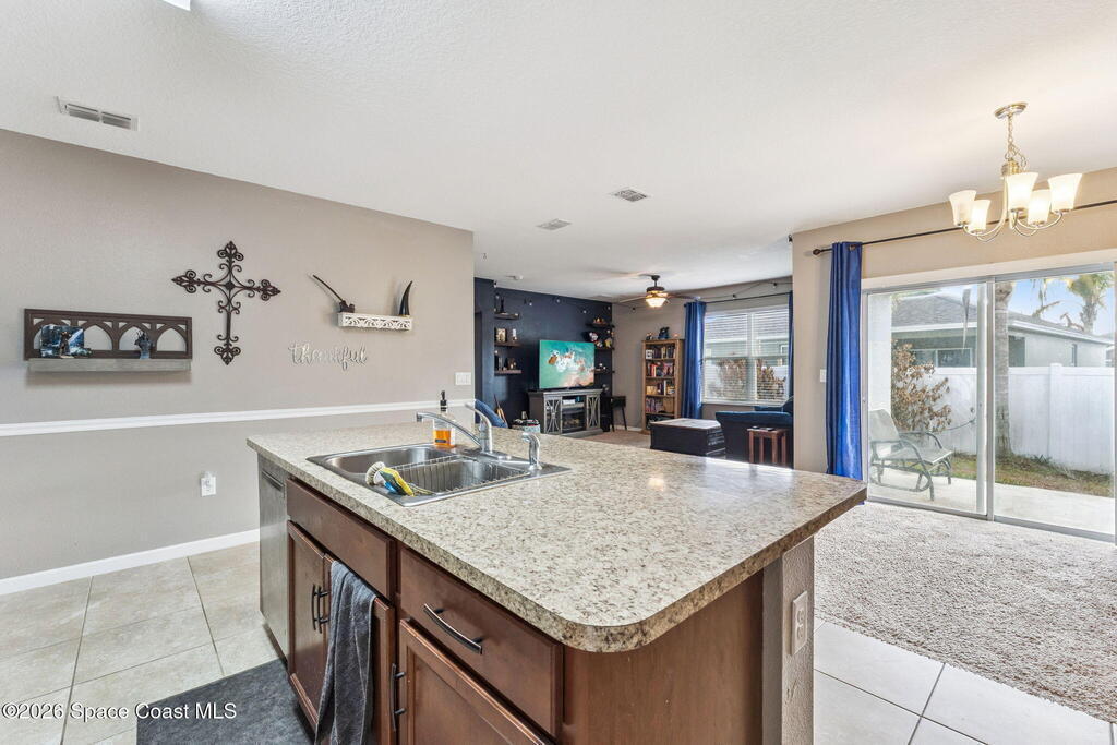 Welcome home to this beautifully maintained home in a desirable Titusville neighborhood offering comfort, functionality, and easy Florida living. This bright, open floor plan is ideal for both everyday living and entertaining. The spacious kitchen features warm wood cabinetry, generous counter space, a center island with bar seating, and stainless steel appliances, all overlooking the main living and dining areas for seamless flow. Tile flooring throughout the main spaces adds durability and style, while large windows fill the home with natural light. The primary suite offers a relaxing retreat with a well-appointed en suite bath and ample closet space. Additional bedrooms provide flexibility for family, guests, or a home office. Enjoy a private backyard perfect for relaxing or hosting gatherings. Conveniently located near shopping, dining, schools, major roadways, the Space Coast, Kennedy Space Center, and area beaches, this move-in ready home is a wonderful opportunity.