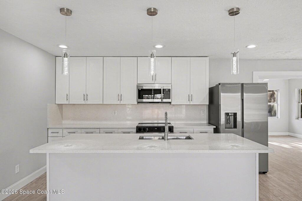 Welcome to this gorgeous 4 bedroom 2 bathroom home loaded with incredible upgrades & designed for comfortable, modern living. Every major system has been thoughtfully updated, giving you peace of mind & stylish finishes throughout. Enjoy a brand-new roof, new plumbing, A/C system & water heater-big-ticket items already taken care of! The beautifully updated kitchen features new stainless steel appliances, sleek quartz countertops, modern cabinetry & contemporary LED lighting. Both bathrooms have been tastefully renovated with fresh fixtures and finishes. Throughout the home, you'll find beautiful new vinyl flooring, fresh interior & exterior paint, new light fixtures & remote-control ceiling fans, creating a bright and inviting atmosphere in every room. The circular driveway provides ample parking along with a convenient garage & room for your Boat & RV. Family-friendly neighborhood with NO HOA, . Close to shopping, beaches, restaurants & golf courses. Move-in-ready gem truly has it all