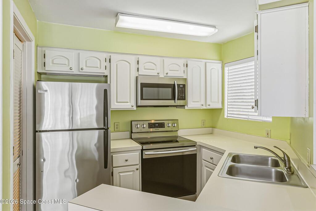 Affordable beachside condo in beautiful resort-style complex. Short walk to beach, Starbucks, multiple restaurants, grocery stores. Also a dog beach within walking distance. 2 pets allowed and no rental restrictions so use it when you want to and rent it out other times for extra income. This is a large 1-bedroom end unit with vinyl and tile flooring - no carpet. All appliances included, even washer and dryer. Bath has been tastefully updated. Private balcony overlooks trees and has access from bedroom and living room. Community offers heated pool/spa, clubhouse, and fitness center. . Air handler 2022, compressor 2025, water heater 2024 so all mechanicals are newer and in good shape. This building has 3 floors and unit 37 is an end unit on 2nd floor. Stunning neighborhood with lots of trees and water. Low monthly dues of $423 include master insurance policy, maintenance, management, cable TV, and trash. Great place to live the easy life or rent out for investment. Come see it!