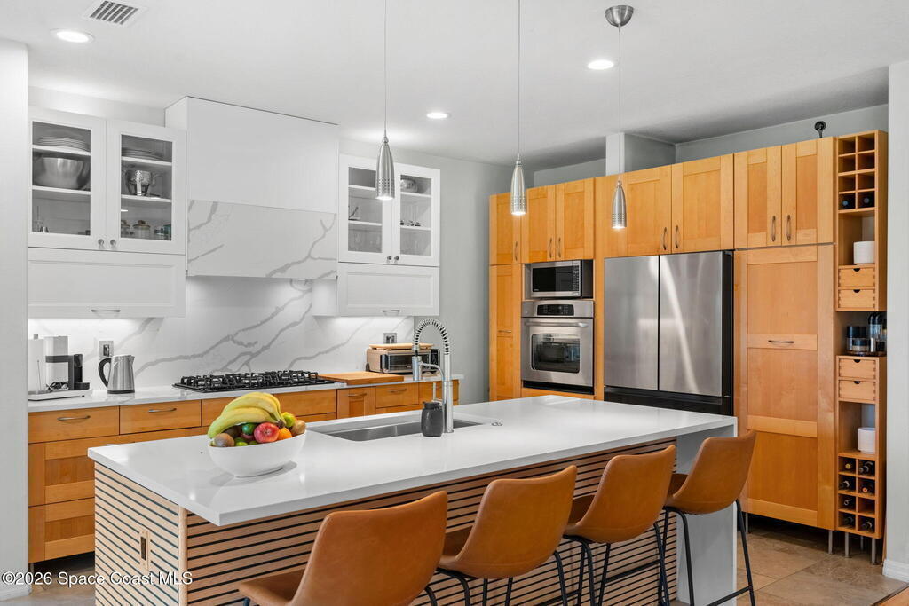 Exceptional updated 4 bedroom 3.5 bath home in the highly desirable and gated Pineda Ridge neighborhood, where style, comfort and location work together beautifully. From the moment you enter, you'll appreciate the thoughtful design and layout with flexible living spaces. At the heart of the home is a true chef's kitchen - a dream space for cooking, entertaining, and gathering. With abundant workspace, high end finishes and flow into the living and outdoor areas, it's perfectly designed for everyday living and special occasions. The primary suite with it's beautifully appointed bathroom, plus an additional bedroom and full bath, along with a convenient half bath, are located on the main level. Upstairs features 2 additional bedrooms and a full bathroom. New metal roof 2024 and A/C in 2023. Centrally located in Melbourne with easy access to the beaches, I-95, shopping, dining, and top employers.
