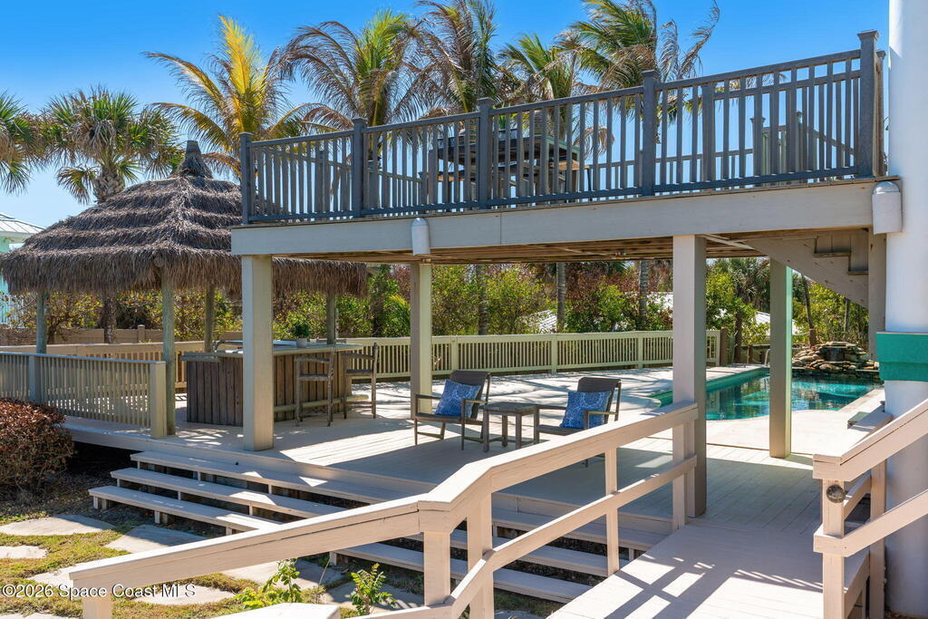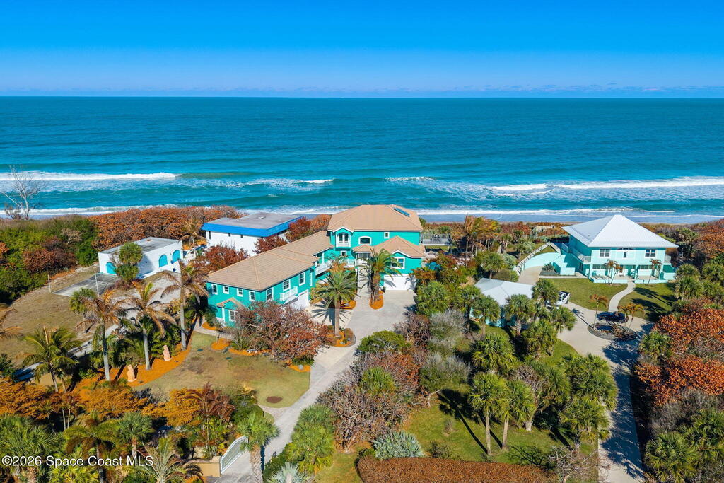Incredible Oceanfront estate home on over an acre in one of the most pristine stretches of Florida coastline you'll find ! A private Oceanside, heated , salt system pool, parking for up to 8 cars, private elevator, private separate guest suite, newer impact glass windows throughout, extensive outdoor balconies and deck areas and much more to enjoy should you end up being the lucky next owner of this magnificent waterfront property.