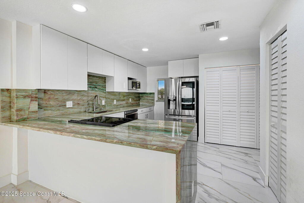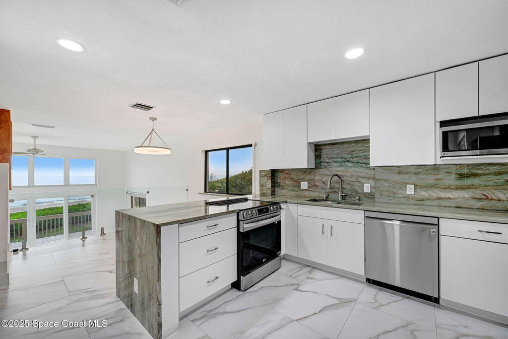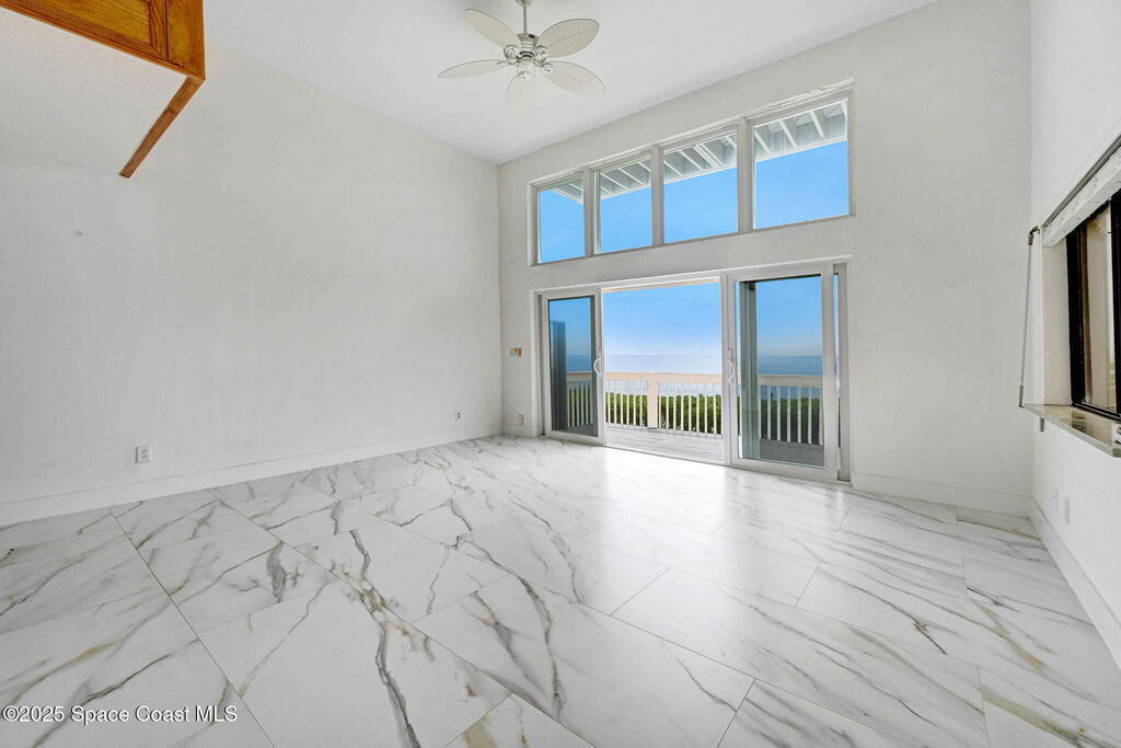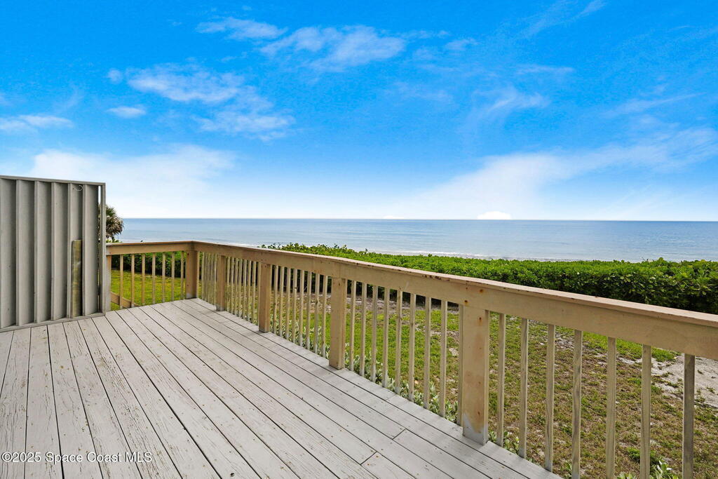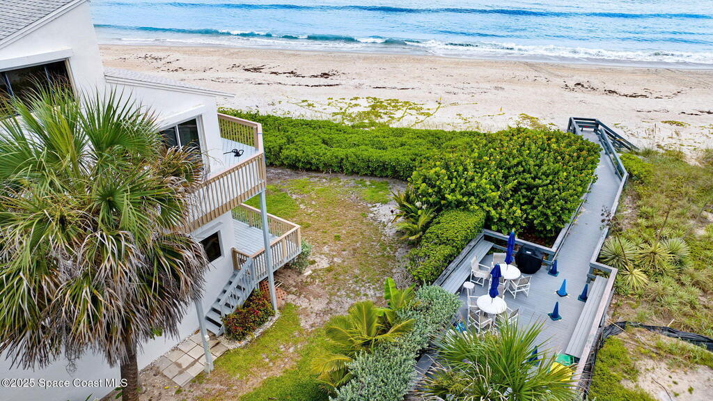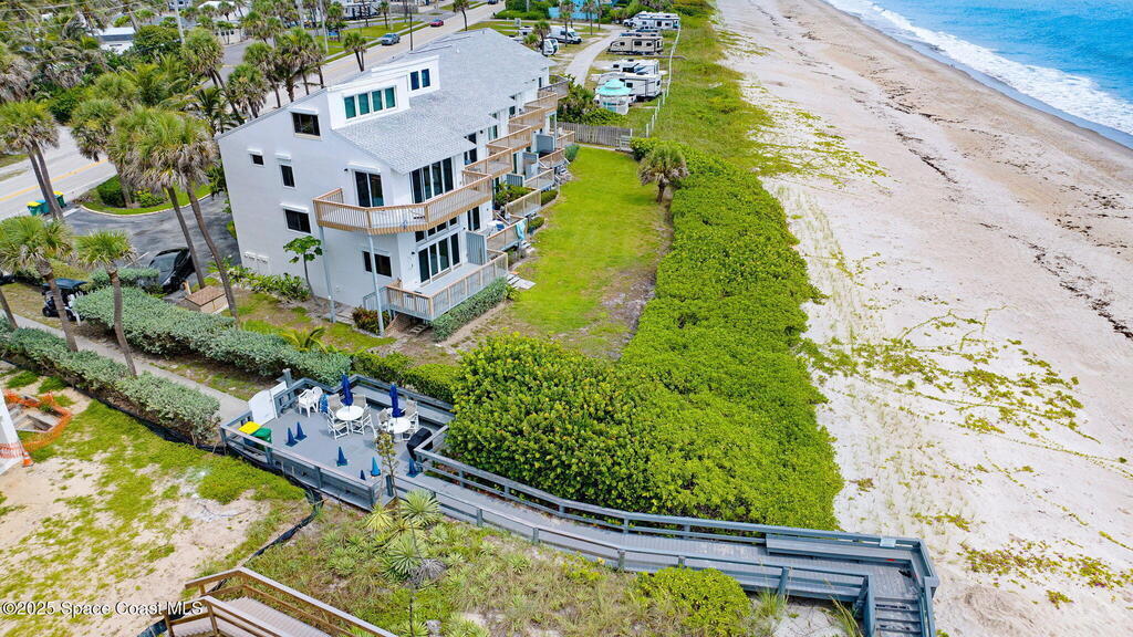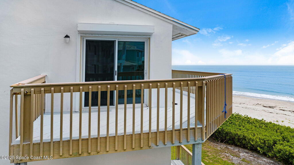 Ocean Front South East corner Ultimate Surfer's Dream Home with private each access. Lease term min 4 months .If you like Fishing, Golfing, Catching perfect waves, walking the shoreline, watching wild sea life and birds or being fascinated by Sea Turtles nesting in your backyard, this home is for you..Spacious, fully renovated open kitchen, with new cabinets, gorgeous granite waterfall countertops, Top of the line appliances, washer & dryer hookup available at top floor full home water filtration systems, Roof 2019, AC 2019, 24x48 White Porcelain floor, smart toilets, electric car charger and much more.Enjoy uninterrupted beach views from Cape Canaveral to Vero Beach. Miles of sandy beaches, wildlife and blue waters. 15-foot ceilings and over 2000 square feet interior plus 3 outside decks.Two master suites on the second level with their own terraces, plus a huge oceanfront 18x13 loft on the top floor surrounded by multiple panoramic windows.