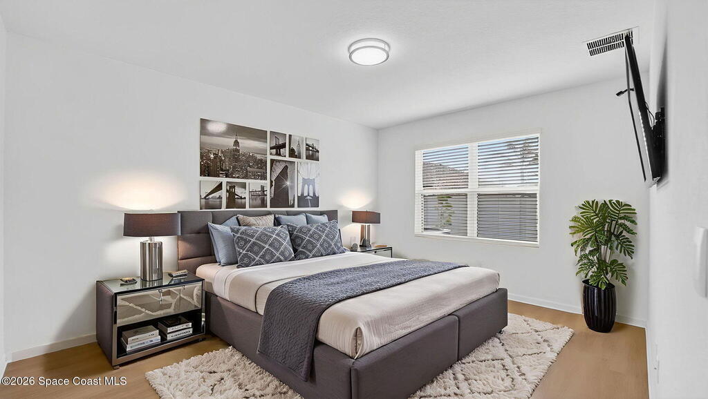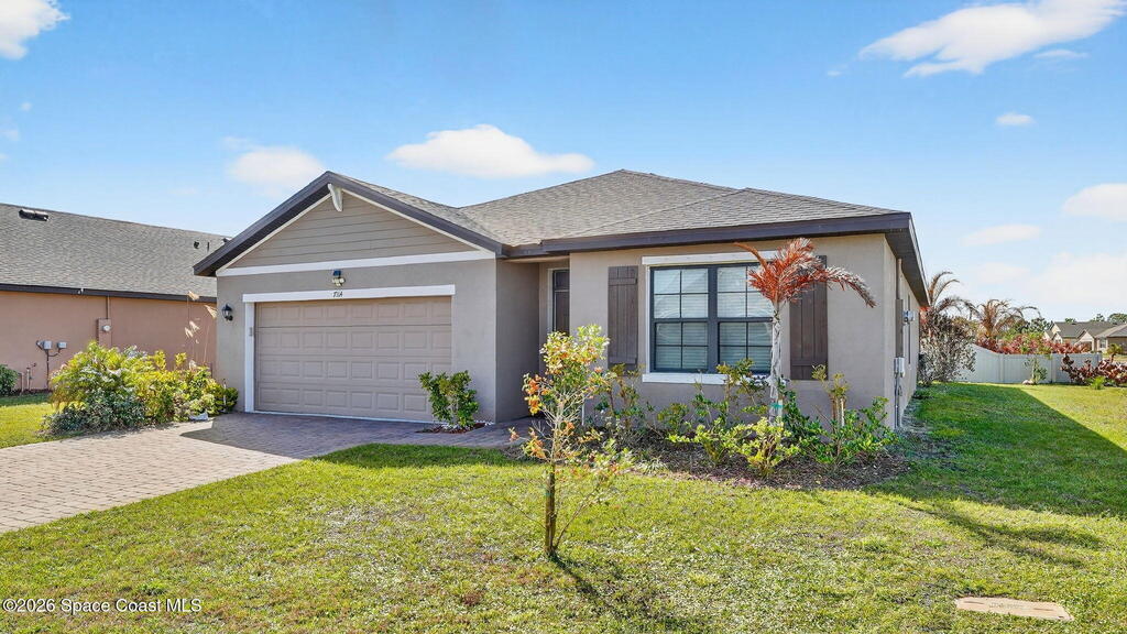 Priced to Sell! Check out this upgraded Cali floor plan in the beautiful Crystal Bay Community. This home offers a spacious corner lot with an automated front and rear sprinkler system, paved driveway, river breezes, new vinyl flooring throughout (no carpets), sleek kitchen backsplash, expansive pantry, LED lighting fixtures, blinds on all windows, latest home tech with keypad front door and garage entry, and it's just a short walk away from the community amenities. Moreover, enjoy the resort-style living community featuring a new clubhouse, pool, fitness center, pickleball and bocce courts, dog park, and with close proximity to the Indian River Lagoon-perfect for relaxed, coastal living.