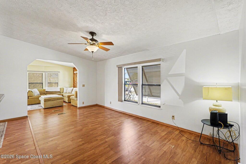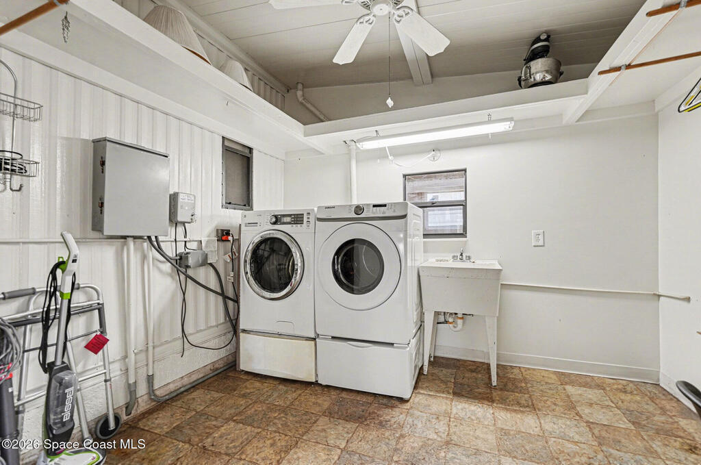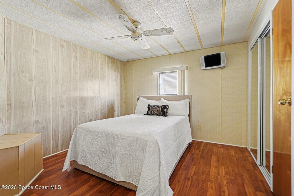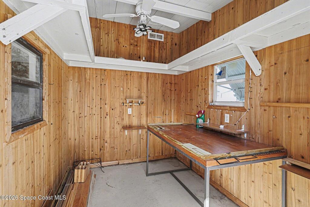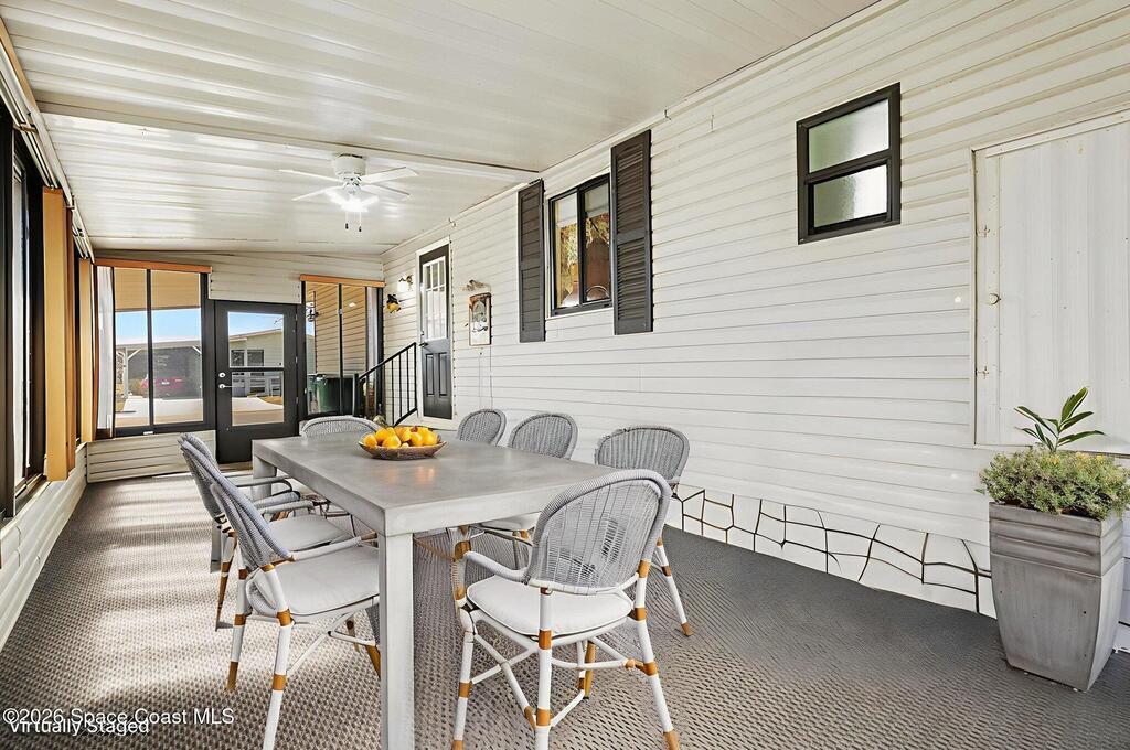 Bright and beautiful home, perfect for entertaining or enjoying the Florida lifestyle! This peaceful retreat features updated bathrooms and an updated kitchen, equipped with stainless steel refrigerator, dishwasher, and corian countertops. Natural light fills the large, open living rooms as you walk through your beautiful front door. The kitchen and dining area flow wonderfully for hosting. The layout includes a spacious master suite with walk in closet, 2nd bedroom and guest bathroom down the hall. The Laundry room is located in your sunroom off of the kitchen, great for indoor/outdoor living. The sunroom opens out to the carport, and fenced in back yard, ideal for pets! You will find your attached workshop right outback as well.Situated in the center of Barefoot Bay, enjoy the great amenities this community has to offer, including a 2-acre private beach, 3 pools, fishing pier, pickle ball courts, 18- hole golf course, restaurants, and so much more, with NO HOA