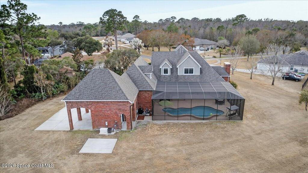 Experience space, privacy, and luxury in this stunning 6 bedroom, 5 bathroom pool home on 1.09 acres! With 4, 155 square feet of living space, this thoughtfully designed residence offers room for everyone. The primary suite is conveniently located on the first floor, creating a private retreat with easy access to the main living areas. Need more flexibility? There's an option to create a 7th bedroom on the first floor complete with its own private bath--perfect for guests or multi-generational living. Step outside to enjoy the beautiful 2-year-old pool, ideal for relaxing or entertaining, all surrounded by peaceful nature views. The expansive wrap-around porch invites you to unwind and take in the serene setting. Tucked away on a quiet cul-de-sac, yet just 35 minutes from Orlando International Airport, this home offers the perfect blend of tranquility and convenience. Close to beaches, shopping, schools, and everything you want in a Florida home!