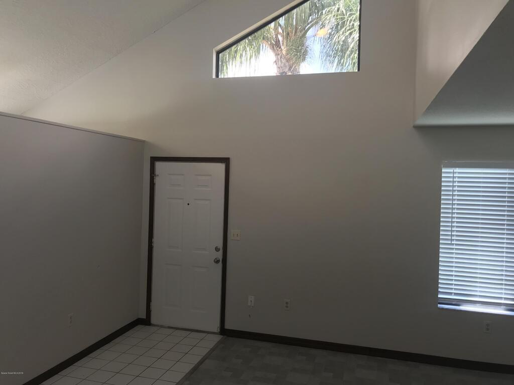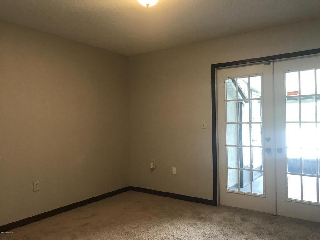 Merritt Court Townhomes. Central Merritt Island three bedroom two bath townhome. Two bedrooms and bath downstairs. Open living room area. Kitchen with stainless steel appliances. Screened porch. Bedroom upstairs - loft syle - with bath. Small fenced in yard. Laundry hookup inside for full size washer/dryer. Community pool. Owner would consider a small pet. No aggressive breeds please. Only 2 open parking spaces are assigned to unit.
