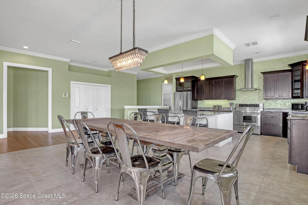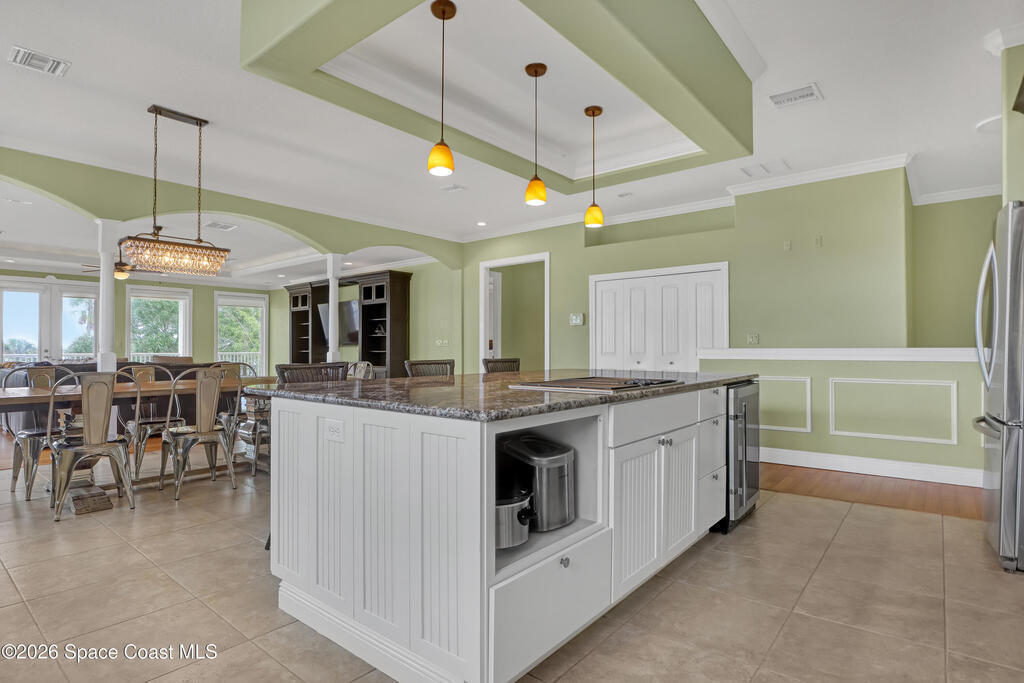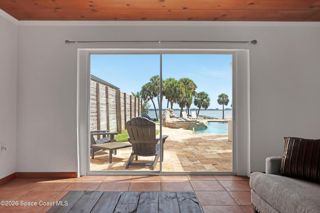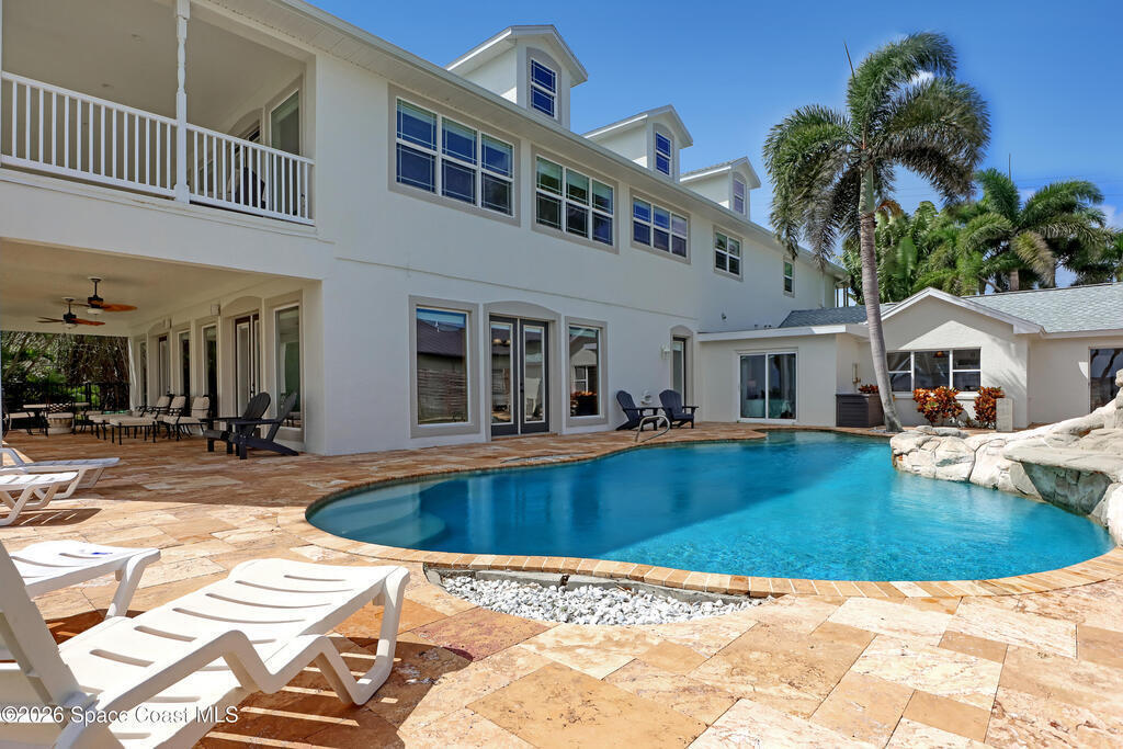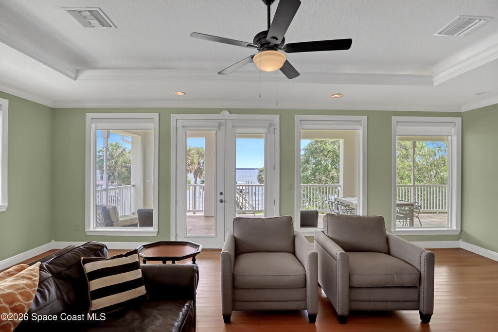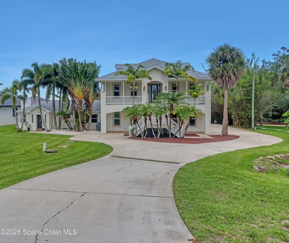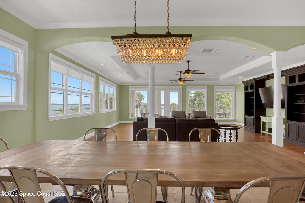 Sweeping Indian River views from this resort style home offering multiple living configurations. Designed for MULTI-GENERATIONAL living (3 FULL kitchens and 2 laundry), in home care providers or people that love to entertain. NO HOA10 foot ceilings, generous layout with nearly 7000 square feet of living & scores of windows make this home truly unique and breathtaking. A private acre & 3 car garage add to the appeal.Can be split in up to 3 separate ''units'' or opened up to be one massive house. 2ND FLOOR: 4 Bedrooms, 2 bathrooms, laundry and huge covered patio overlooks expansive lawn, pool and river. Panoramic views from kitchen/living/dining areas and primary suite.1ST FLOOR:* Huge Game/Theatre Room with walls of windows and panoramic views of the river.* Separate (but attached) mother in law suite with 2 bedrooms and full kitchen, dining and living with fireplace. * Additional 2 bedrooms, 2 bathrooms, living area and laundry is flexible in configuration.