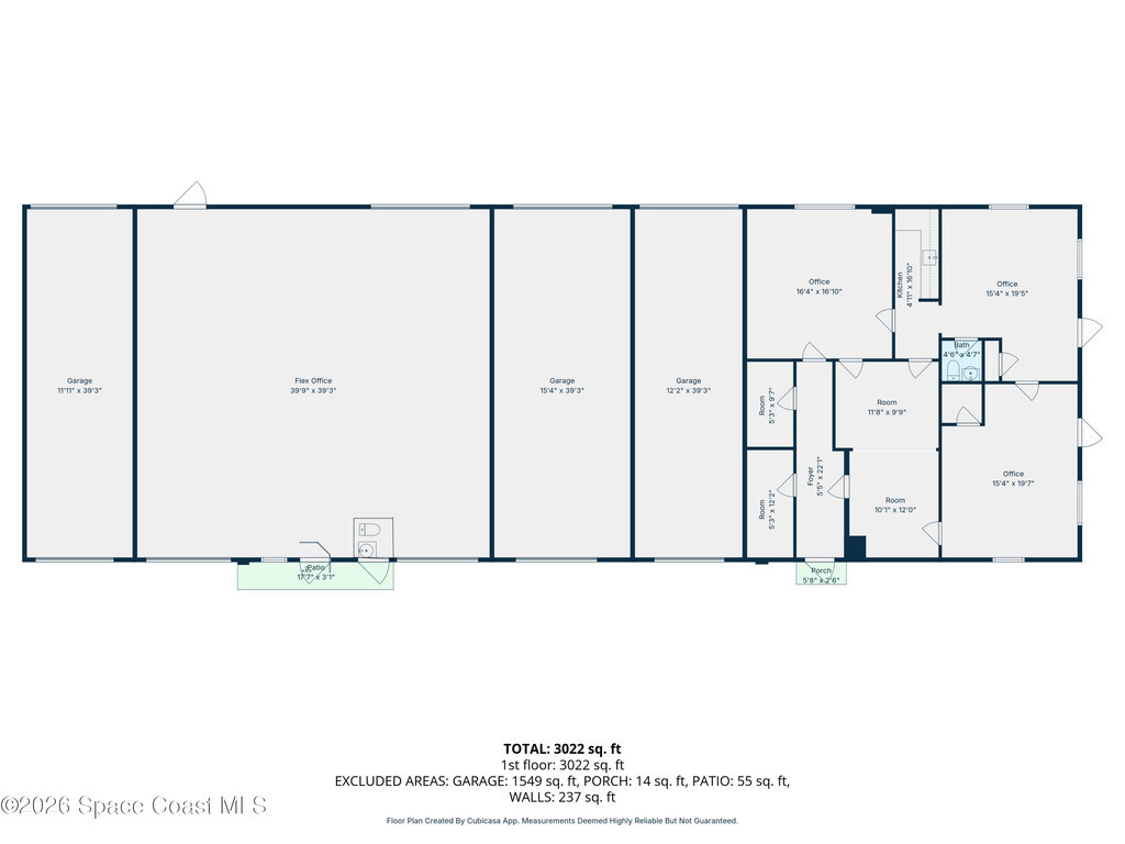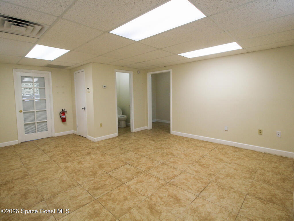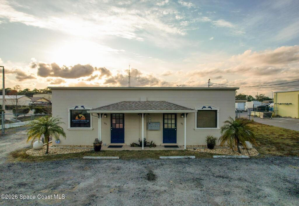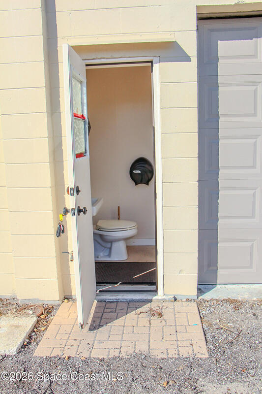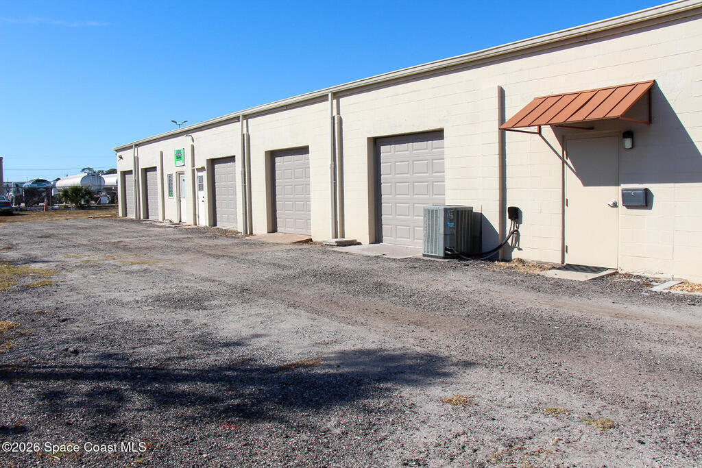 Unit 101 offers a functional office suite with reception, private offices, dedicated kitchen and private bathroom plus a separate warehouse bay (Bay 3) ideal for contractors, trades or storage users. The bay is not physically attached to the office and is accessed from the exterior, providing flexibility for operations and equipment. Property features a high-clearance roll-up door, insulated warehouse ceiling and a large gravel parking and yard area suitable for trucks, trailers and service vehicles in a convenient Rockledge industrial location near major corridors.