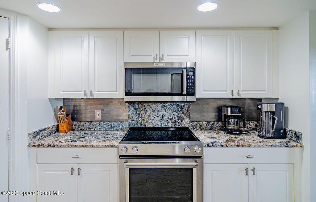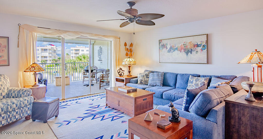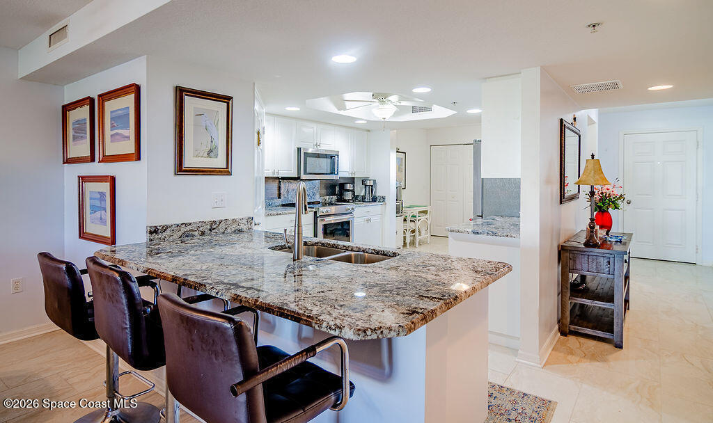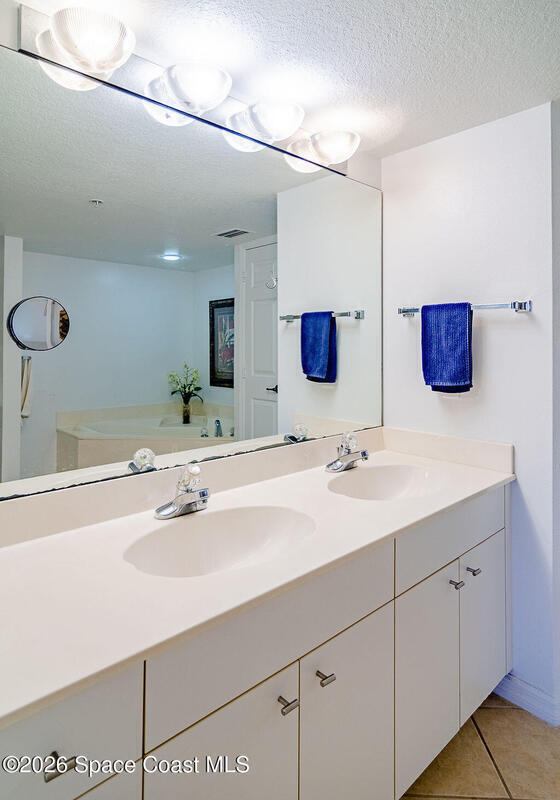 Welcome to the highly sought-after waterfront community of Solana Lake, just a stone's throw from the stunning beaches of Cape Canaveral. This desirable third-floor unit offers breathtaking sunset views overlooking the pool and complex, along with an oversized one-car garage. You'll find yourself closest to the expansive heated pool and jacuzzi, with direct water views from your patio. Step inside to discover high-end finishes throughout, including a beautifully renovated kitchen featuring stainless steel appliances, granite countertops, and elegant porcelain tile flooring. The spacious main bedroom and sizable second bedroom provide ample comfort for residents and guests alike.Enjoy the ease of a short stroll to the beach while benefiting from an HOA that covers water, cable/internet, security, and pest control. Fully furnished options are available for a seamless move-in experience. With strong financials and healthy reserves, this property can be your own piece of paradise!