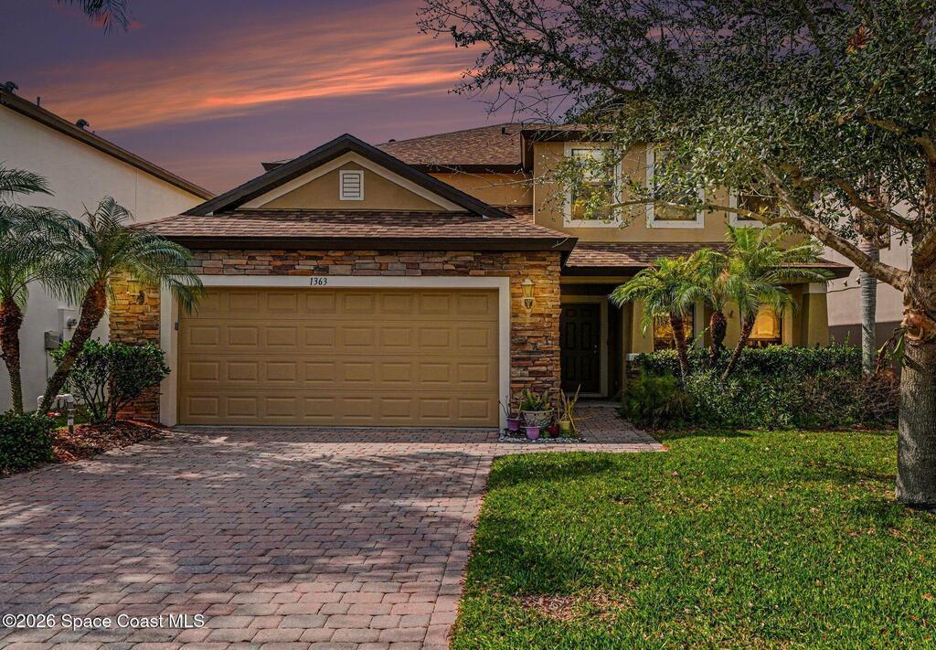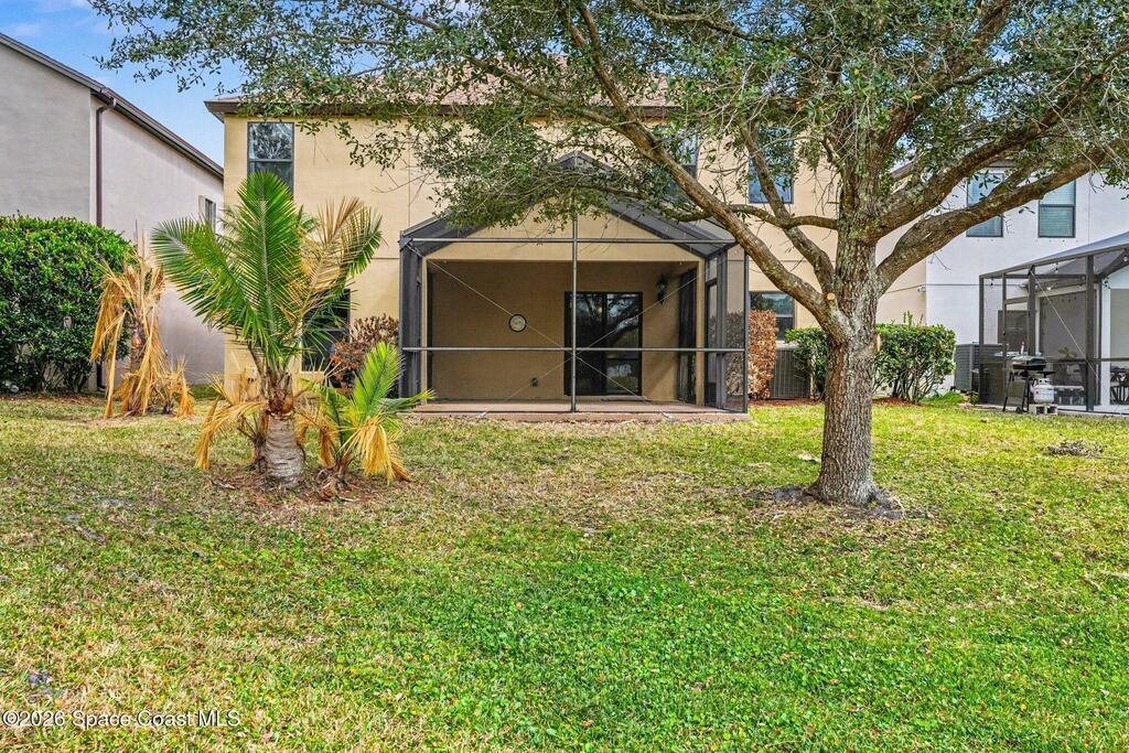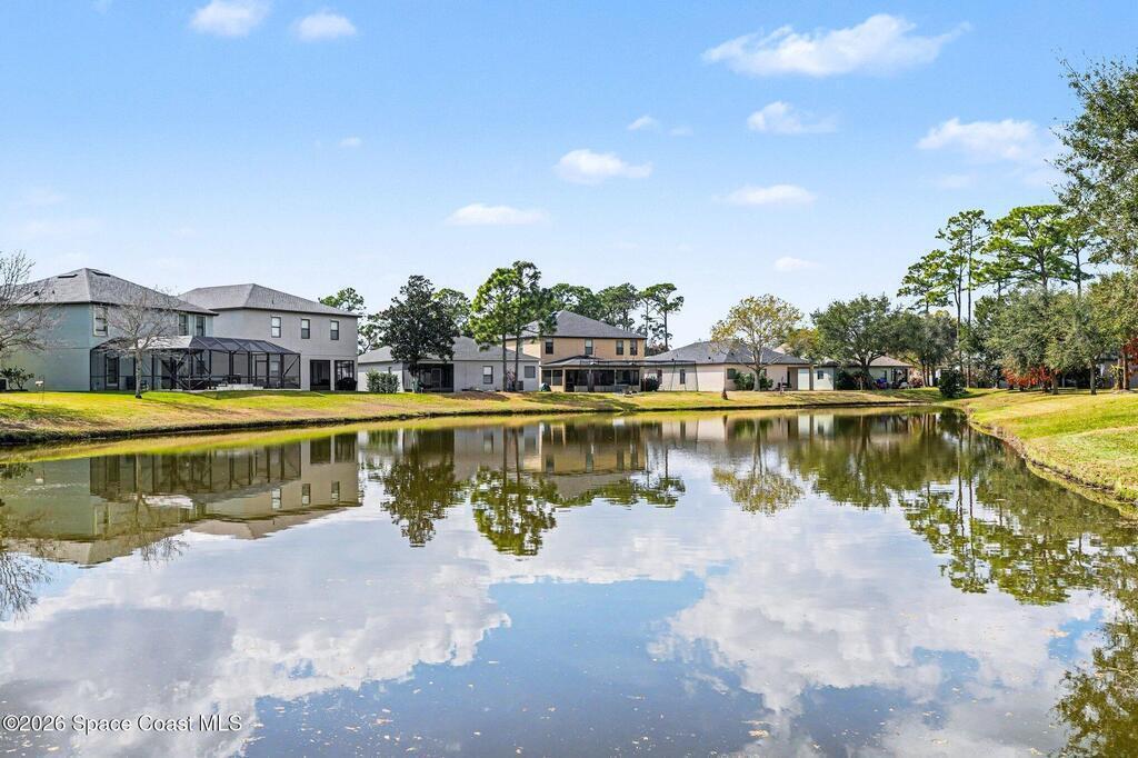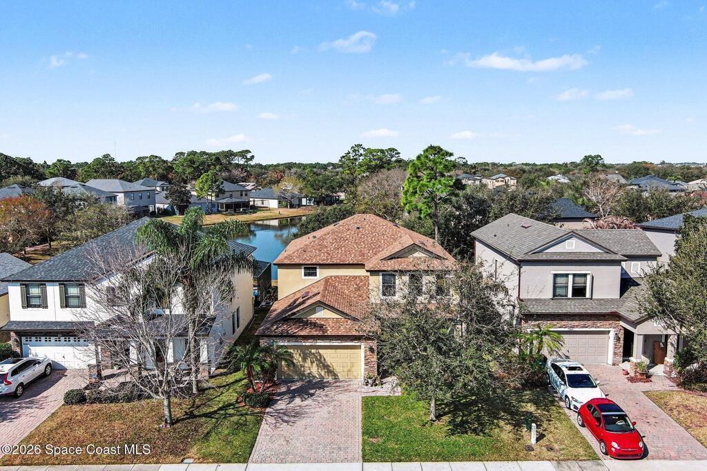 Impeccably maintained 2 story home in a gorgeous gated community. This home includes a rare downstairs bedroom next to a full bathroom with the primary suite & additional 3 bedrooms upstairs making it perfect for guests. The open kitchen with eat-in area & massive walk-in pantry include updates like an air fryer/convection oven, & a sanitizing dishwasher. This blends with the primary gathering room & the trussed porch with extended screen room overlooking the pond for tranquil days. The hardwood staircase & loft lead you to the luxurious primary suite with tray ceilings, huge walk-in closet, garden tub, walk-in shower, & dual sinks with a vanity. Storage is not a problem with a walk-in closet in another bedroom, under stair storage area, & shelving in the garage along with a storage lift. Updates include 2024 roof, 2024 & 2019 AC units (2), 2019 garage door, carpet & more! Perfectly located in the heart of West Melbourne near shopping, dining, schools, medical, the beach & more!